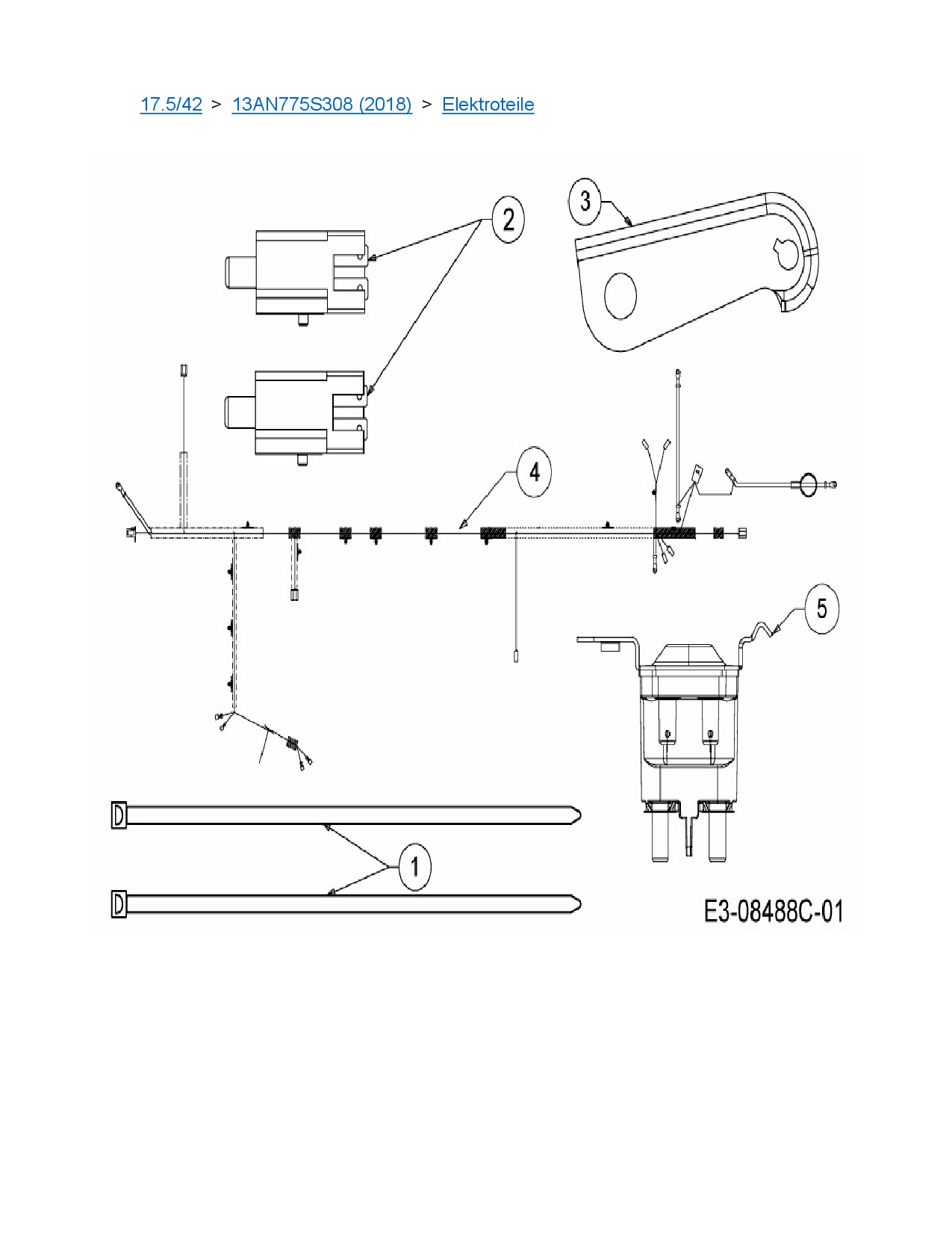 Ersatzteile für Rasentraktor MTD 17.5/42 aus der Zeichnung Elektroteile: