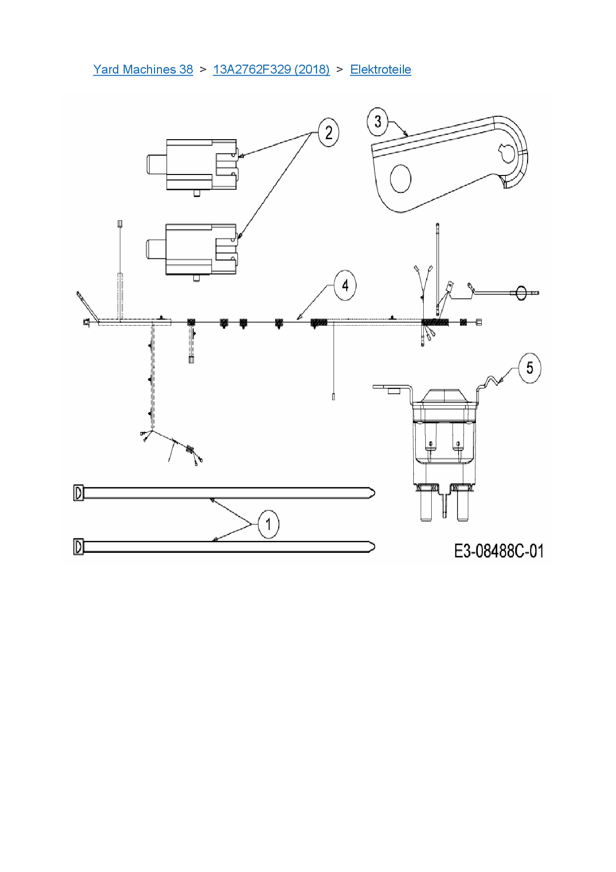 Ersatzteile für Rasentraktor MTD Yard Machines 38 aus der Zeichnung Elektroteile: