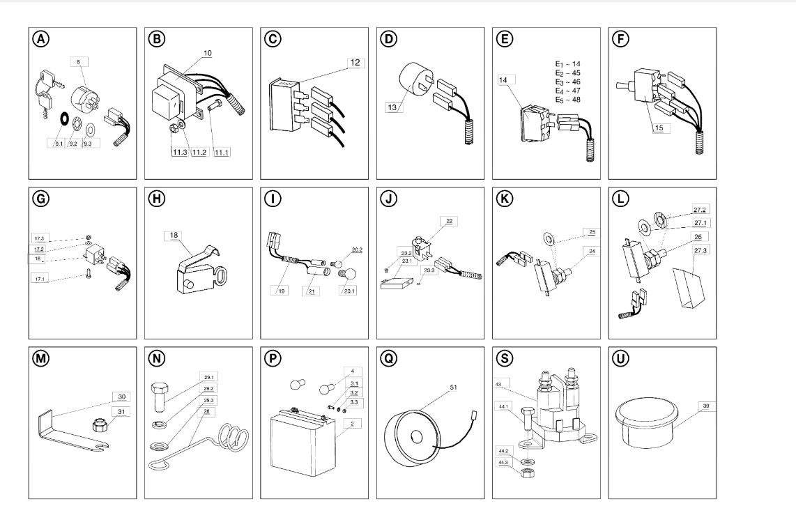 Hier finden Sie alle Ersatzteile für Oleo-Mac Rasentraktor OM 104J/17,5H Cat.2006-2007 aus der Zeichnung für Elektroteile: