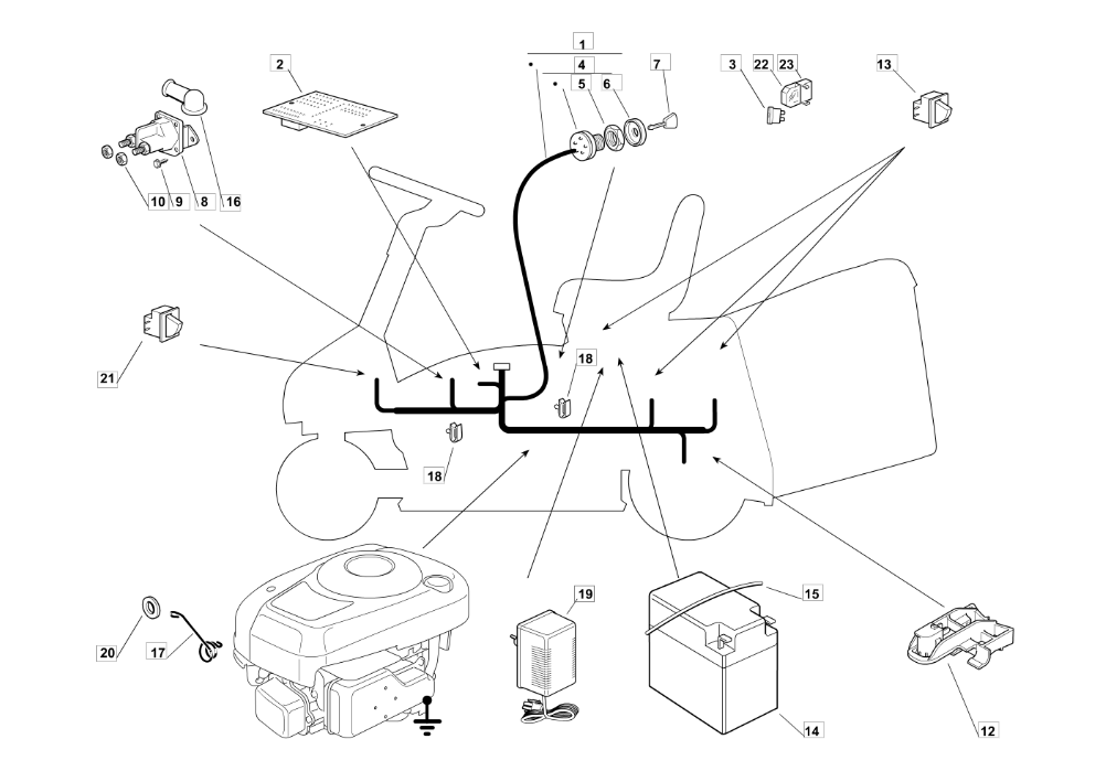 Hier finden Sie alle Ersatzteile für Oleo-Mac Rasentraktor OM 63C/6,5V Cat.2011 aus der Zeichnung für Elektroteile: