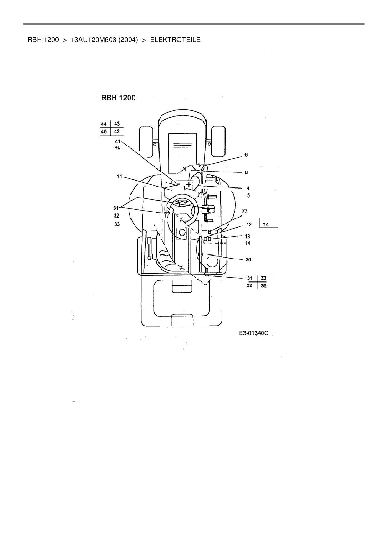 Ersatzteile für Rasentraktor Cub Cadet RBH 1200 aus der Zeichnung Elektroteile: