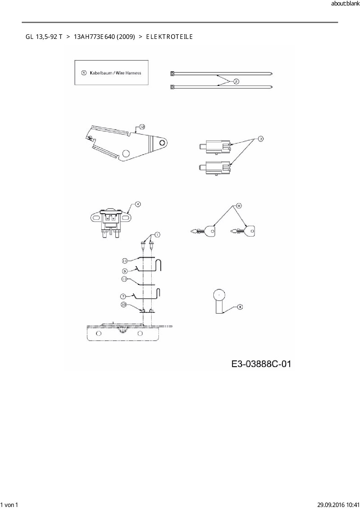 Ersatzteile für Rasentraktor Gartenland GL 13,5-92 T aus der Zeichnung Elektroteile: