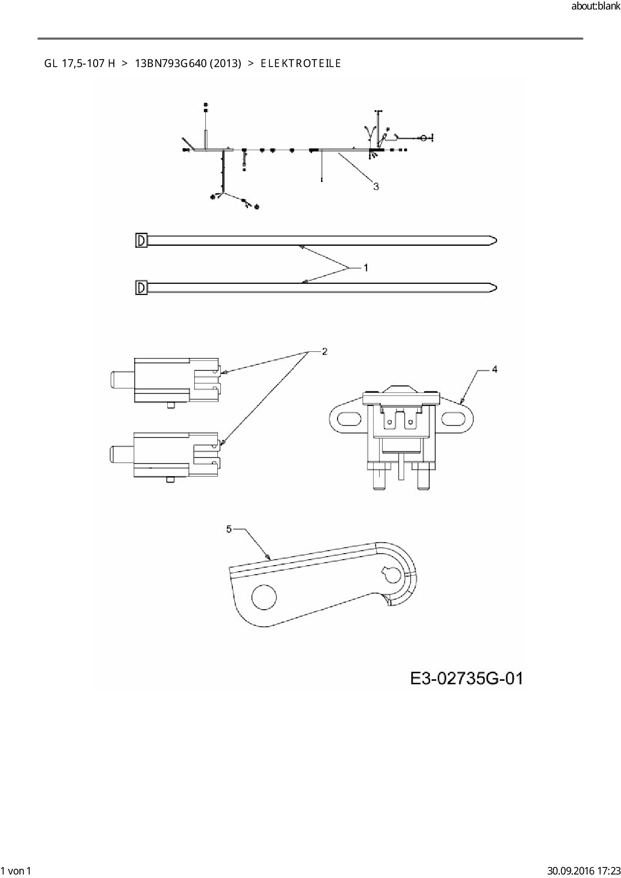 Ersatzteile für Rasentraktor Gartenland GL 17,5-107 H aus der Zeichnung Elektroteile: