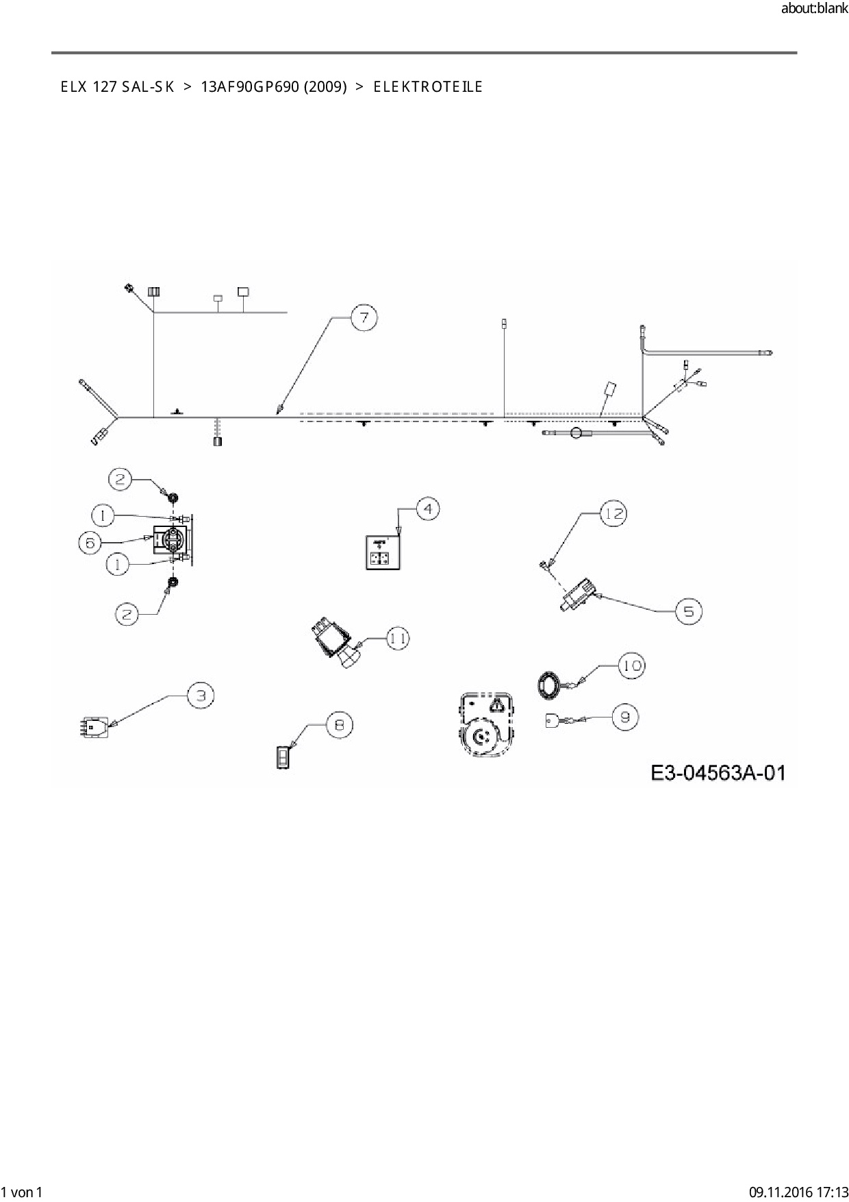 Ersatzteile für Rasentraktor Gutbrod ELX 127 SAL-SK aus der Zeichnung Elektroteile: