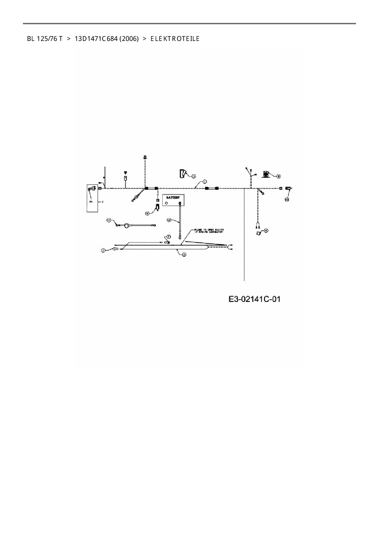 Ersatzteile für Rasentraktor Bolens BL 125/76 T aus der Zeichnung Elektroteile: