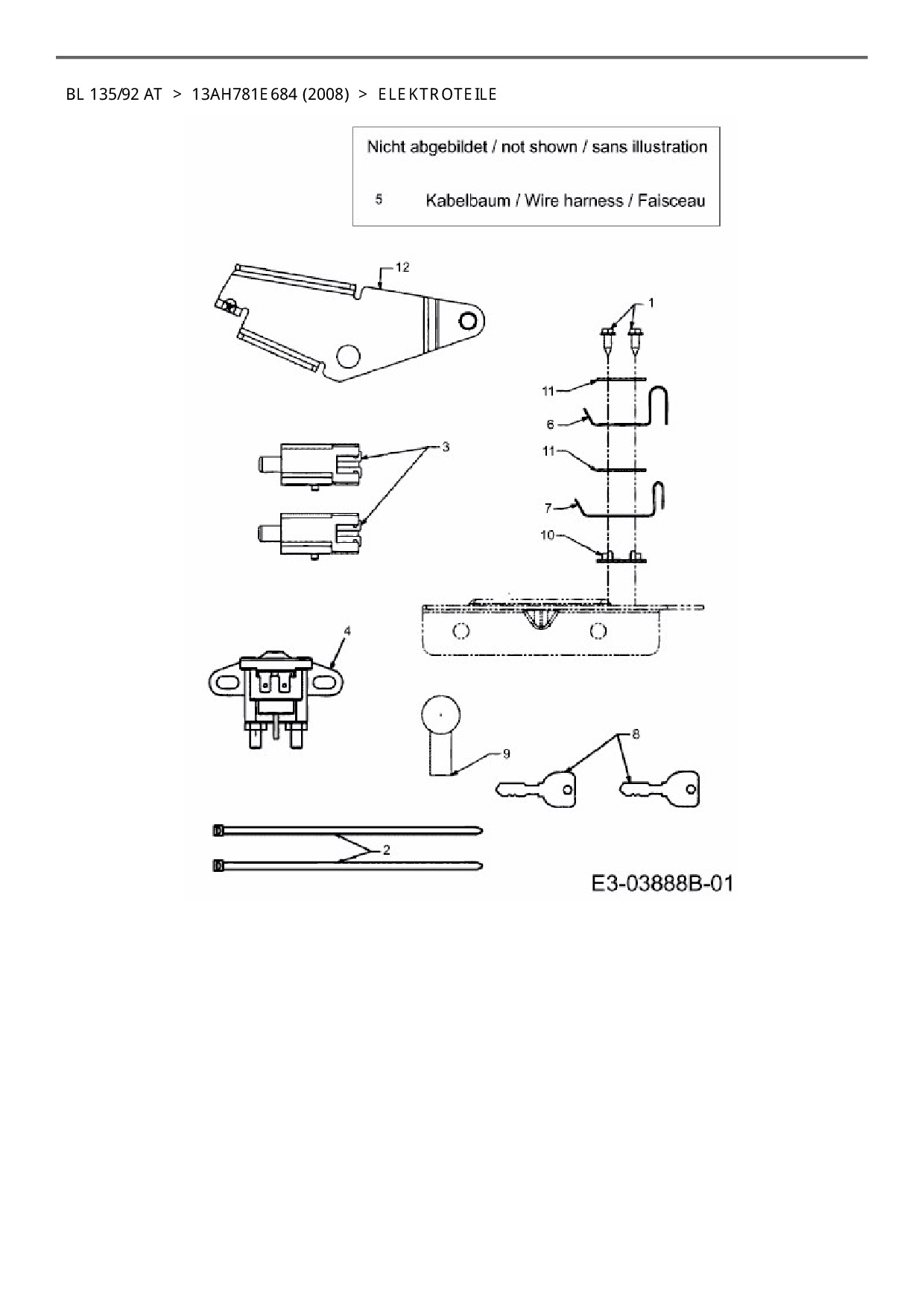 Ersatzteile für Rasentraktor Bolens BL 135/92 AT aus der Zeichnung Elektroteile: