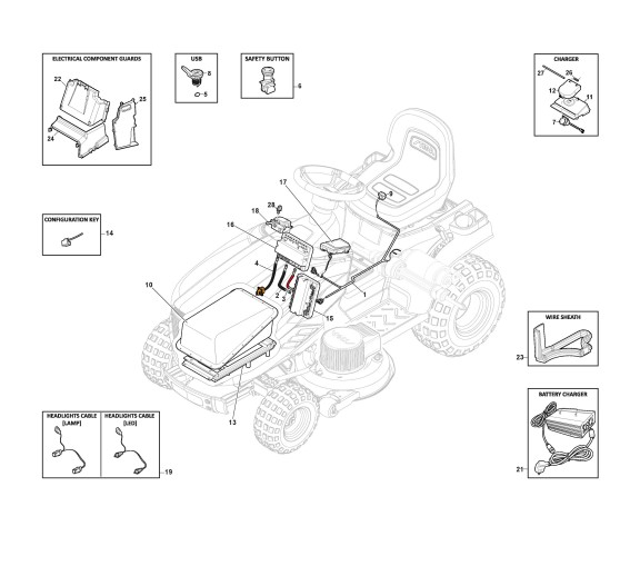 Zeichnungen von Stiga Aufsitzmäher e-Ride S300 mit Geräte Nr. 2T0660481/ST1 ab Baujahr 2021