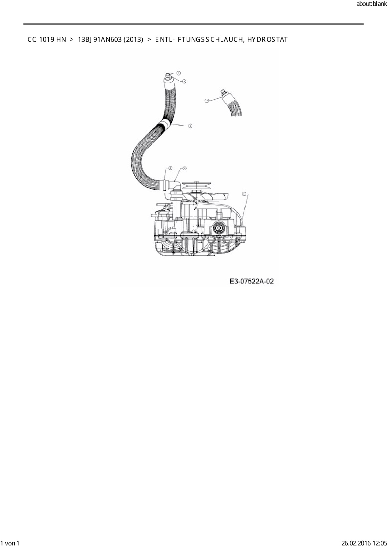 Ersatzteile für Rasentraktor Cub Cadet CC 1019 HN aus der Zeichnung Entlüftungsschlauch, Hydrostat:
