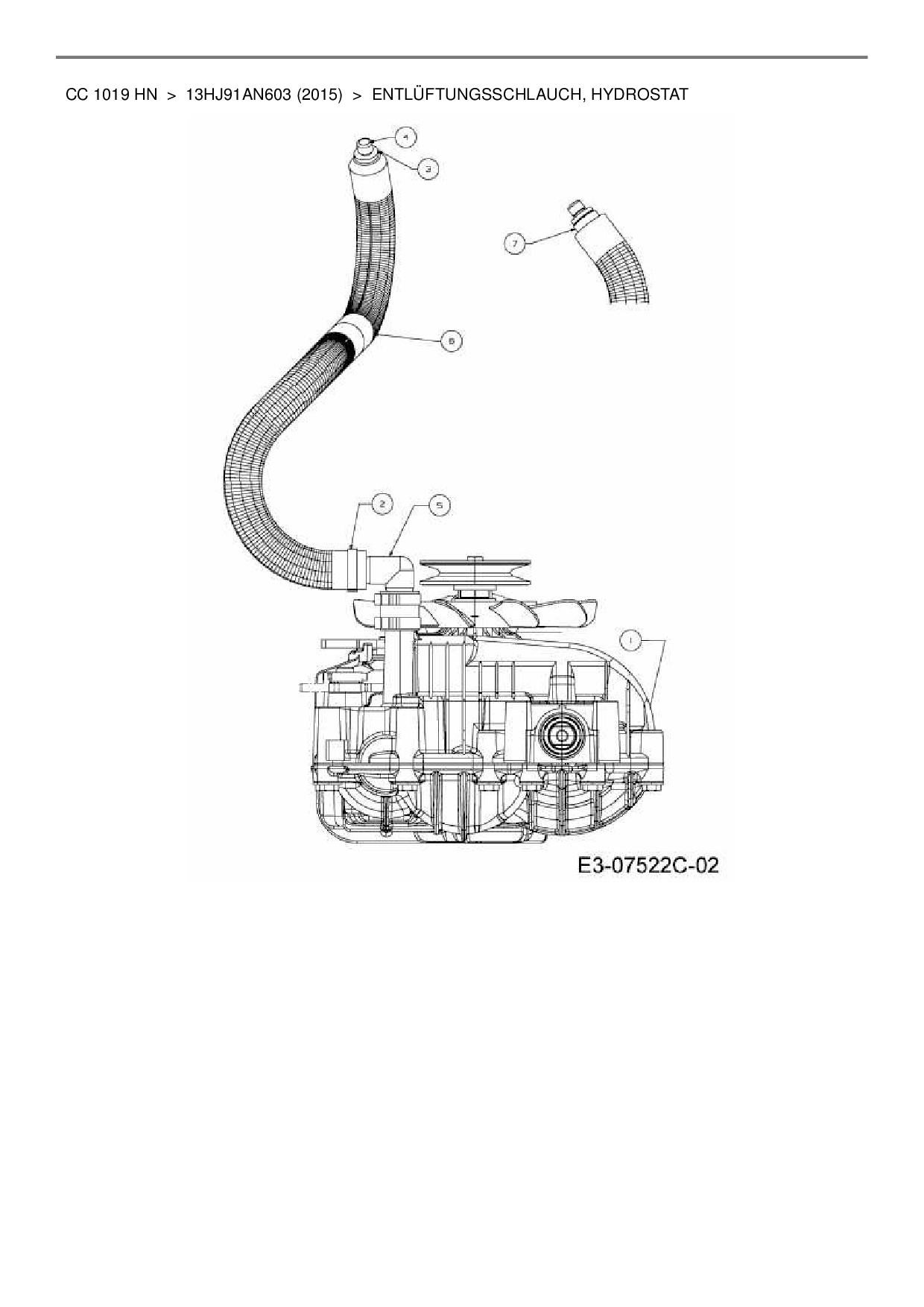 Ersatzteile für Rasentraktor Cub Cadet CC 1019 HN aus der Zeichnung Entlüftungsschlauch, Hydrostat:
