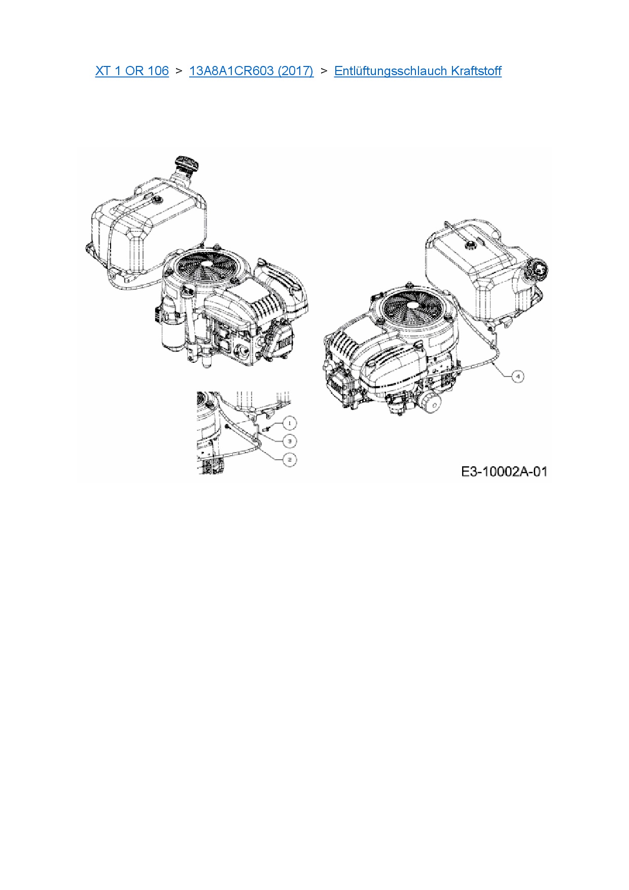 Ersatzteile für Rasentraktor Cub Cadet XT 1 OR 106 aus der Zeichnung Entlüftungsschlauch Kraftstoff: