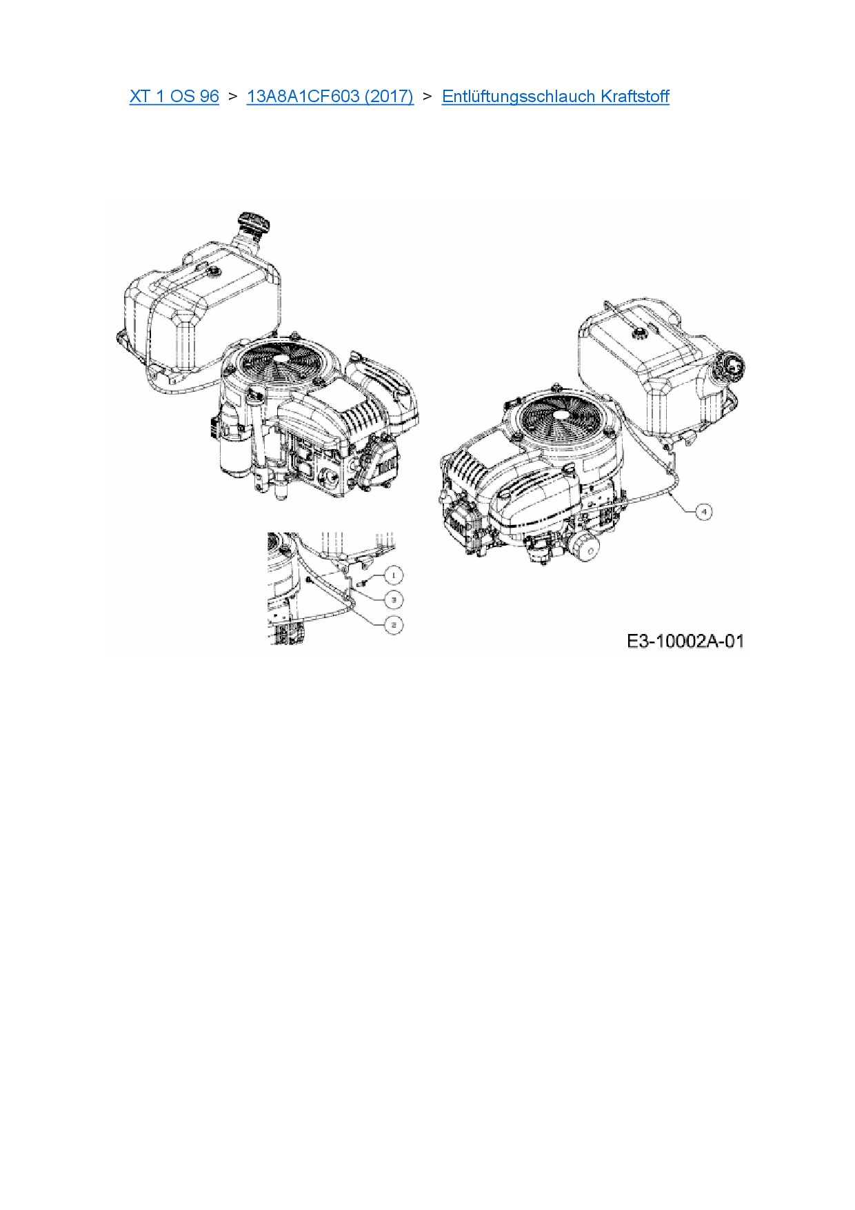 Ersatzteile für Rasentraktor Cub Cadet XT 1 OS 96 aus der Zeichnung Entlüftungsschlauch Kraftstoff: