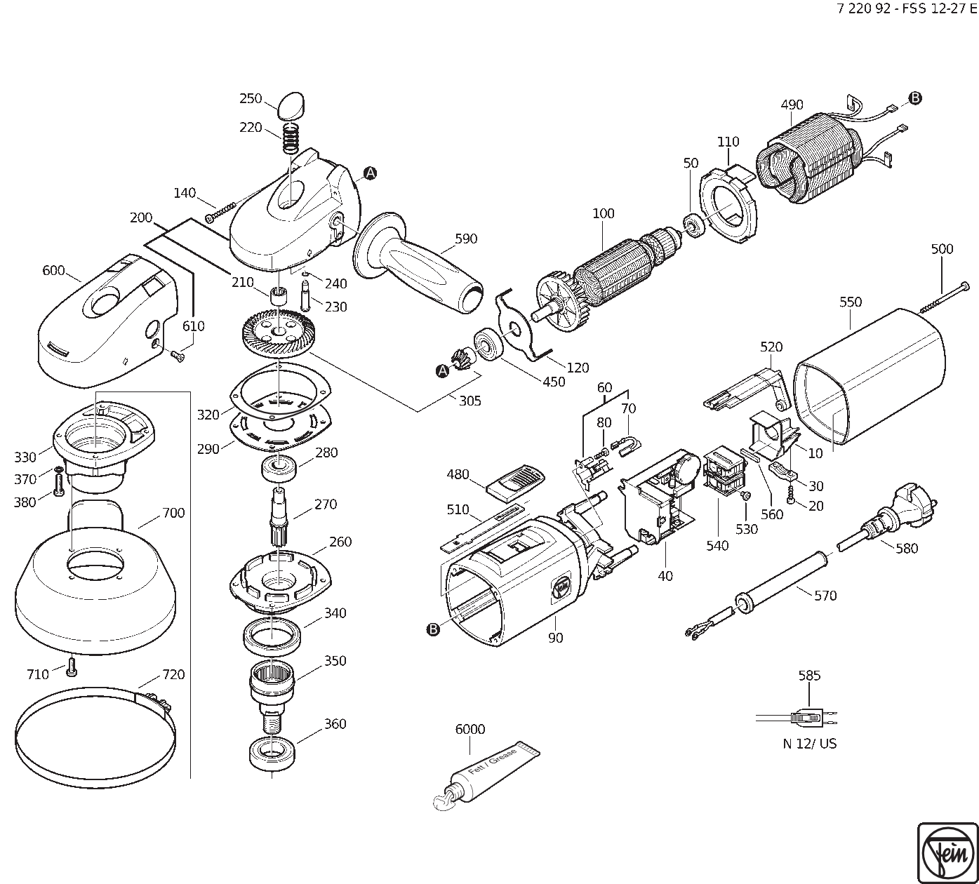 Zeichnung Sollten Sie Fragen zu einem Ersatzteil vom Fein FSS12-27E 72209200236 haben, können Sie uns gerne eine E-Mail (mit einem Foto vom Typenschild Ihres Gerätes) schreiben oder eine Ersatzteilanfrage stellen.