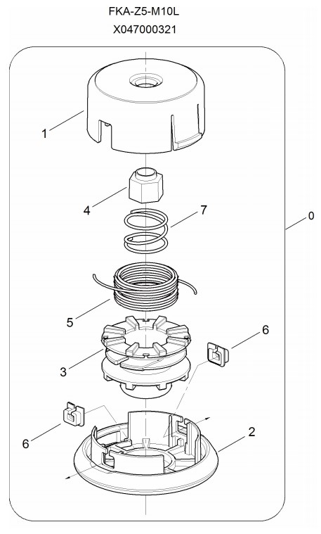 Zeichnung von ECHO Motorsensen Kreiselscheren EKS-PRS-230U Fadenkopf FKA-Z5-M10L: