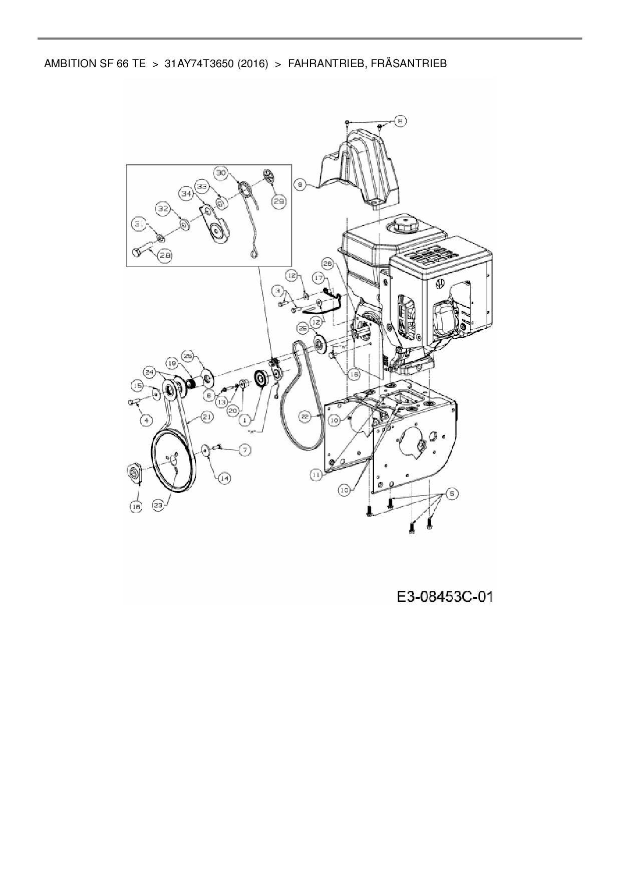Ersatzteile für Schneefräse Wolf-Garten Ambition SF 66 TE aus der Zeichnung Fahrantrieb, Fräsantrieb: