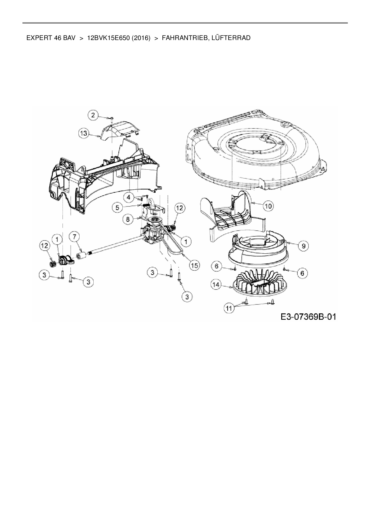 Zeichnung für Wolf-Garten Expert Motormäher mit Antrieb Expert 46 BAV mit der Geräte-Artikelnr. 12BVK15E650 ab Baujahr 2016: