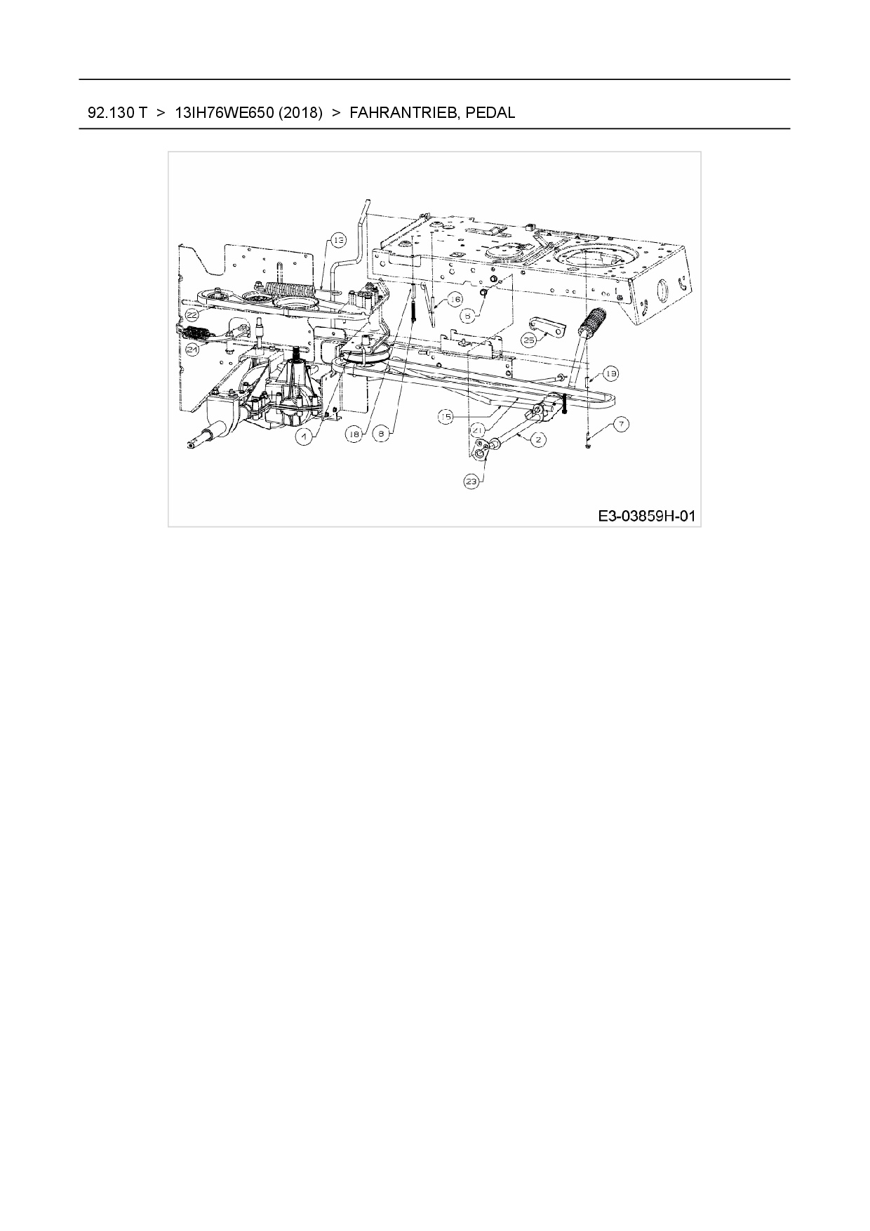 Ersatzteile für Rasentraktor Wolf-Garten 92.130 T aus der Zeichnung Fahrantrieb, Pedal: