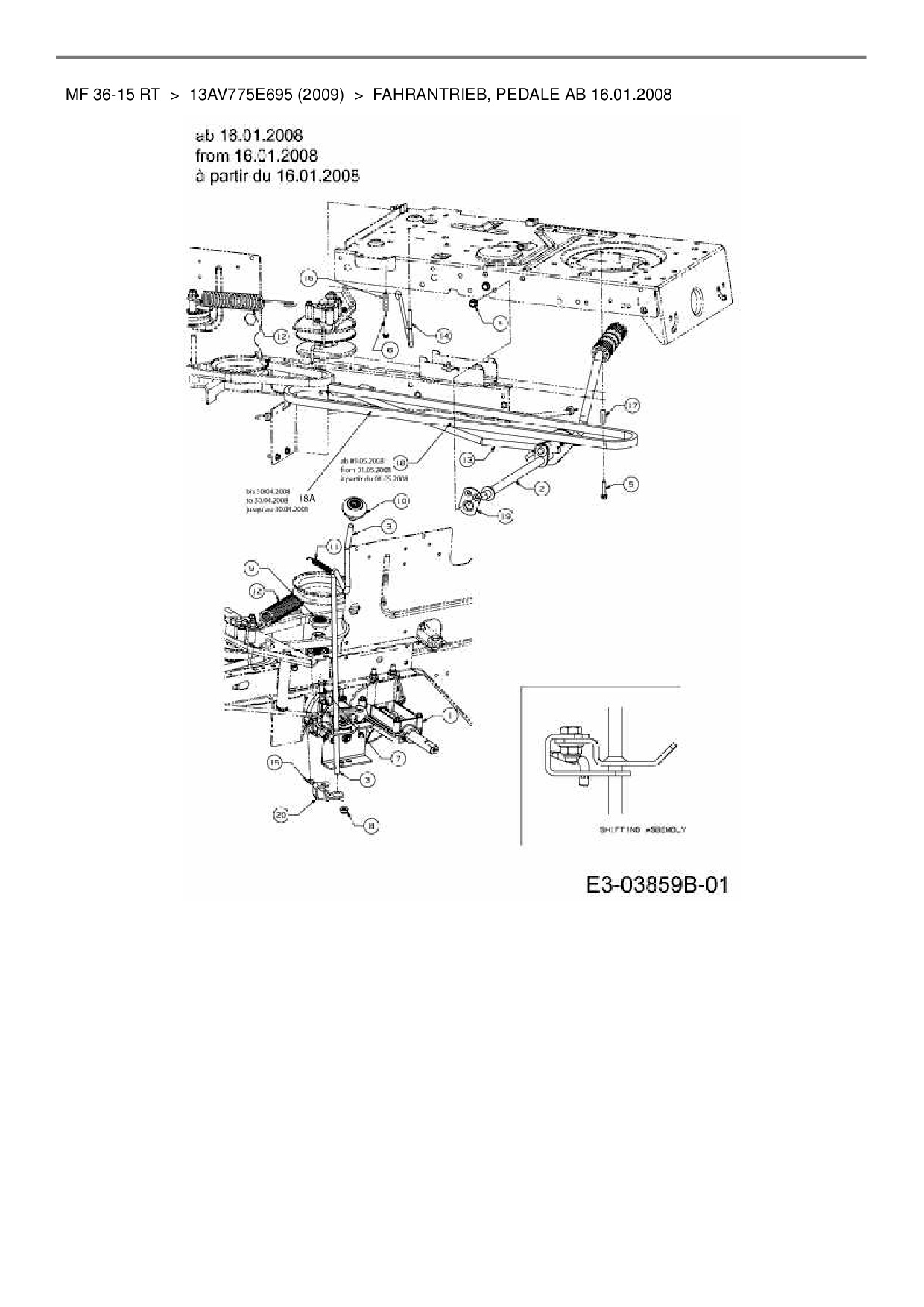 Ersatzteile für Rasentraktor Massey Ferguson MF 36-15 RT aus der Zeichnung Fahrantrieb, Pedale ab 16.01.2008: