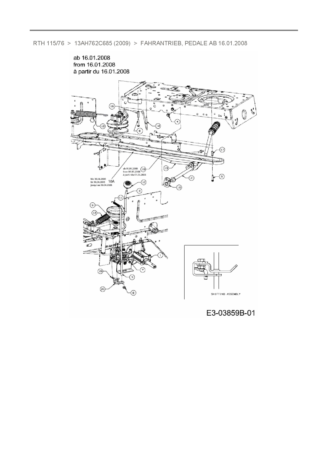 Ersatzteile für Rasentraktor Sunline RTH 115/76 aus der Zeichnung Fahrantrieb, Pedale ab 16.01.2008: