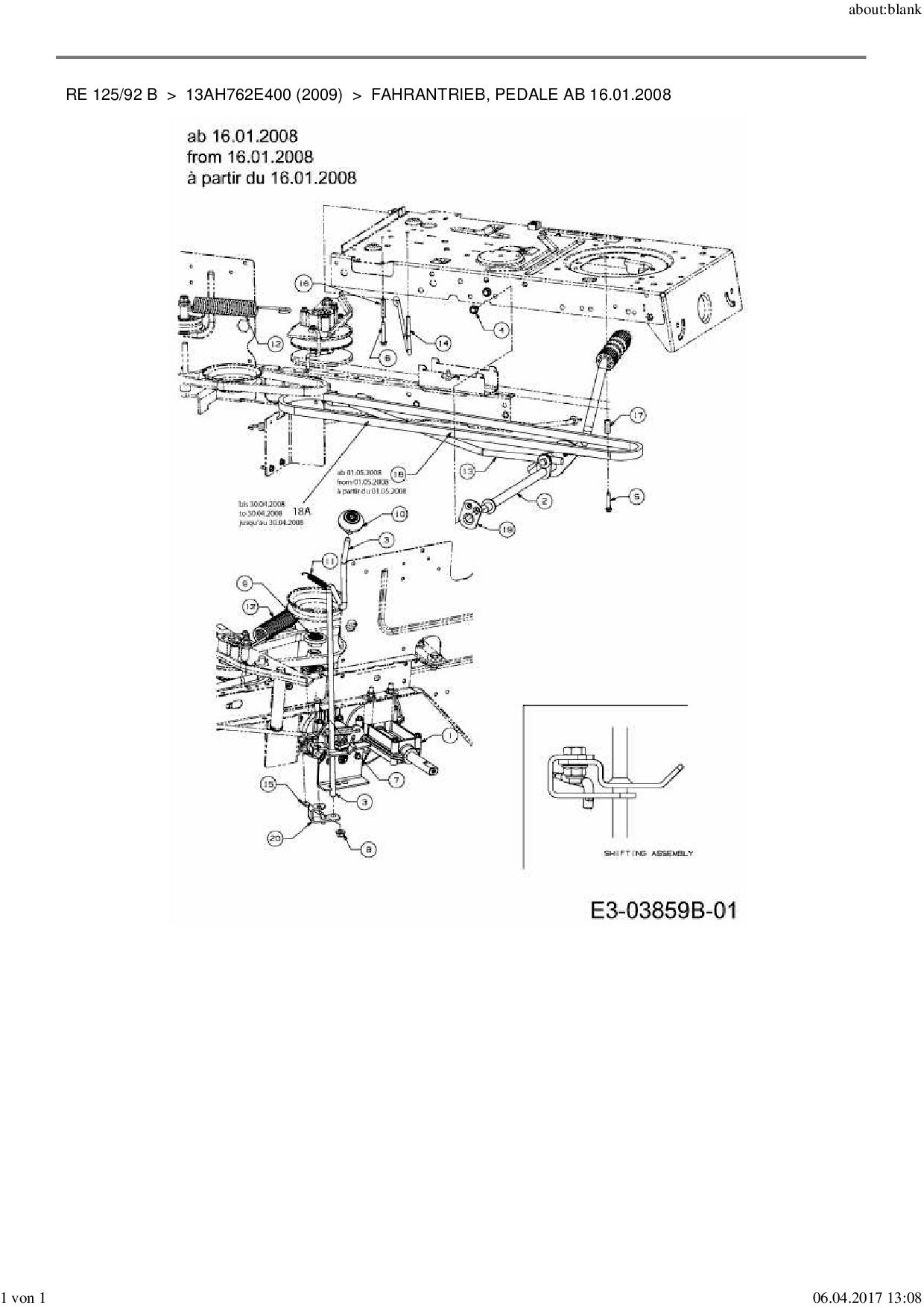 Ersatzteile für Rasentraktor MTD RE 125/92 B aus der Zeichnung Fahrantrieb, Pedale ab 16.01.2008: