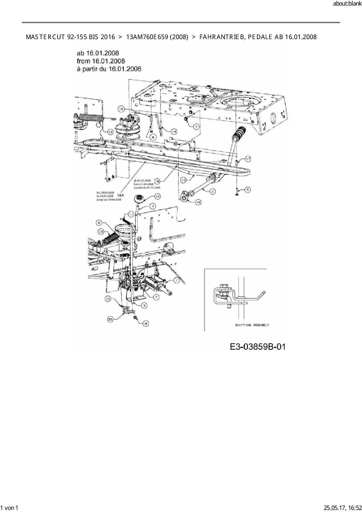Ersatzteile für Rasentraktor Mastercut Mastercut 92-155 bis 2016 aus der Zeichnung Fahrantrieb, Pedale ab 16.01.2008: