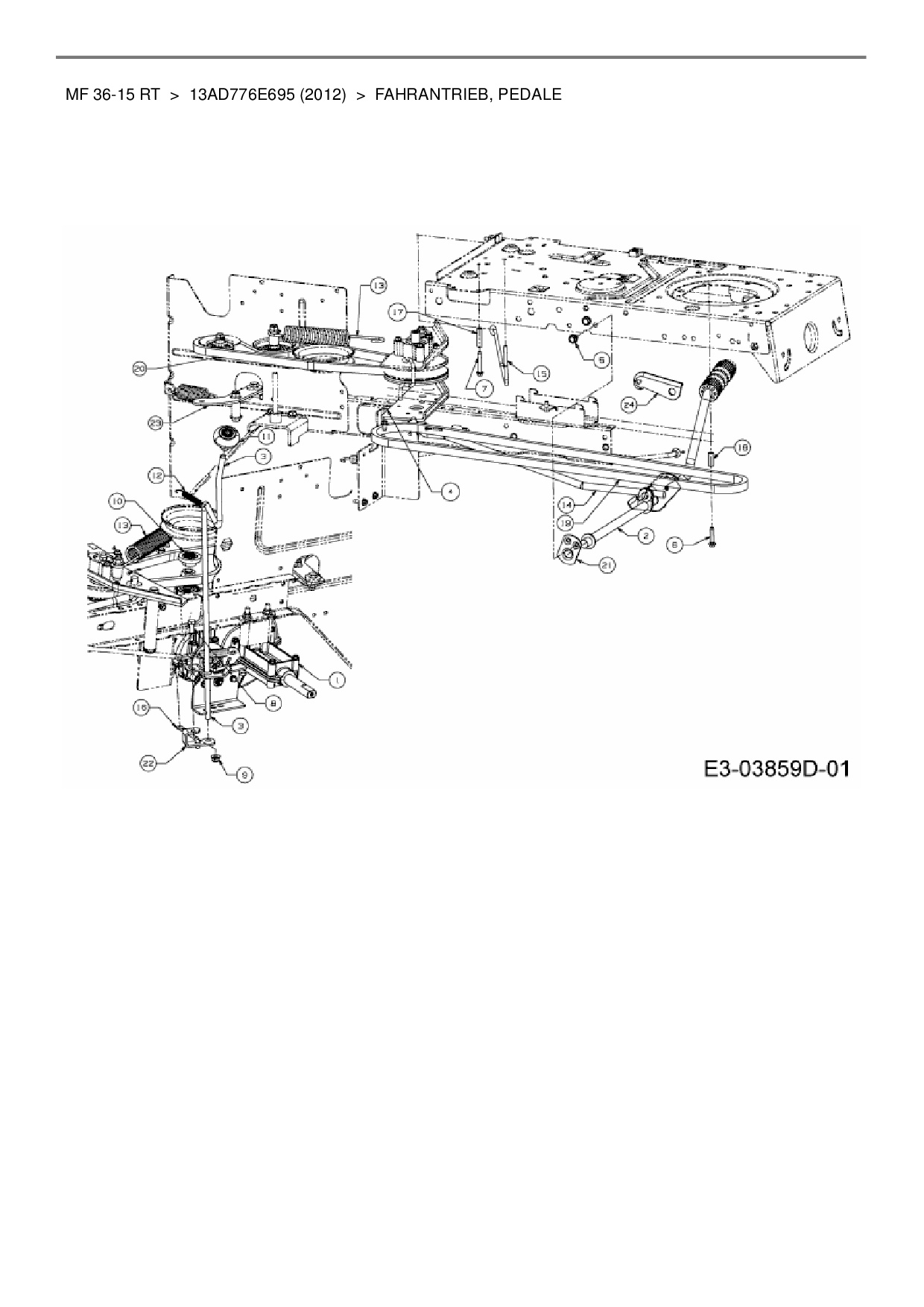 Zeichnung für Massey Ferguson Rasentraktor MF 36-15 RT mit der Geräte-Artikelnr. 13AD776E695 ab Baujahr 2012: