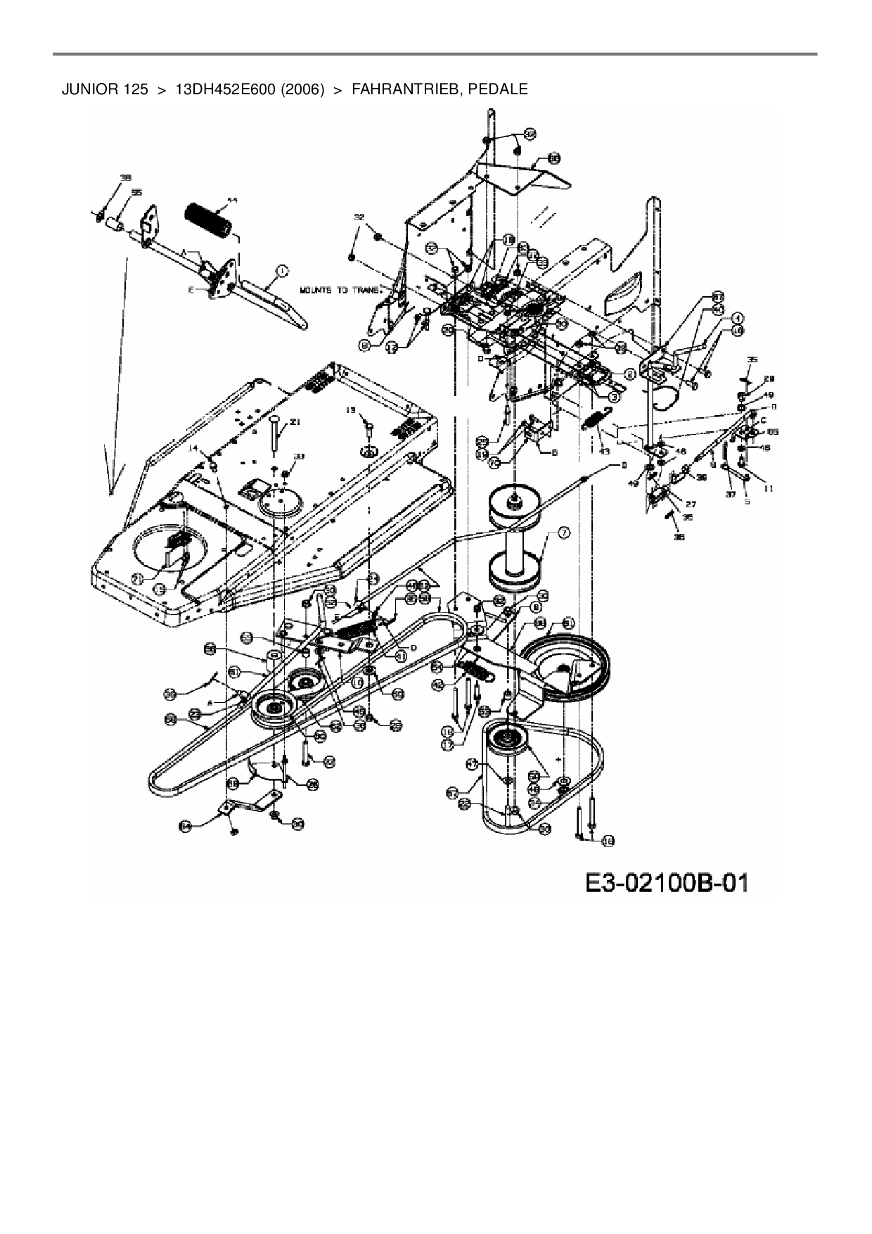Ersatzteile für Rasentraktor MTD Junior 125 aus der Zeichnung Fahrantrieb, Pedale: