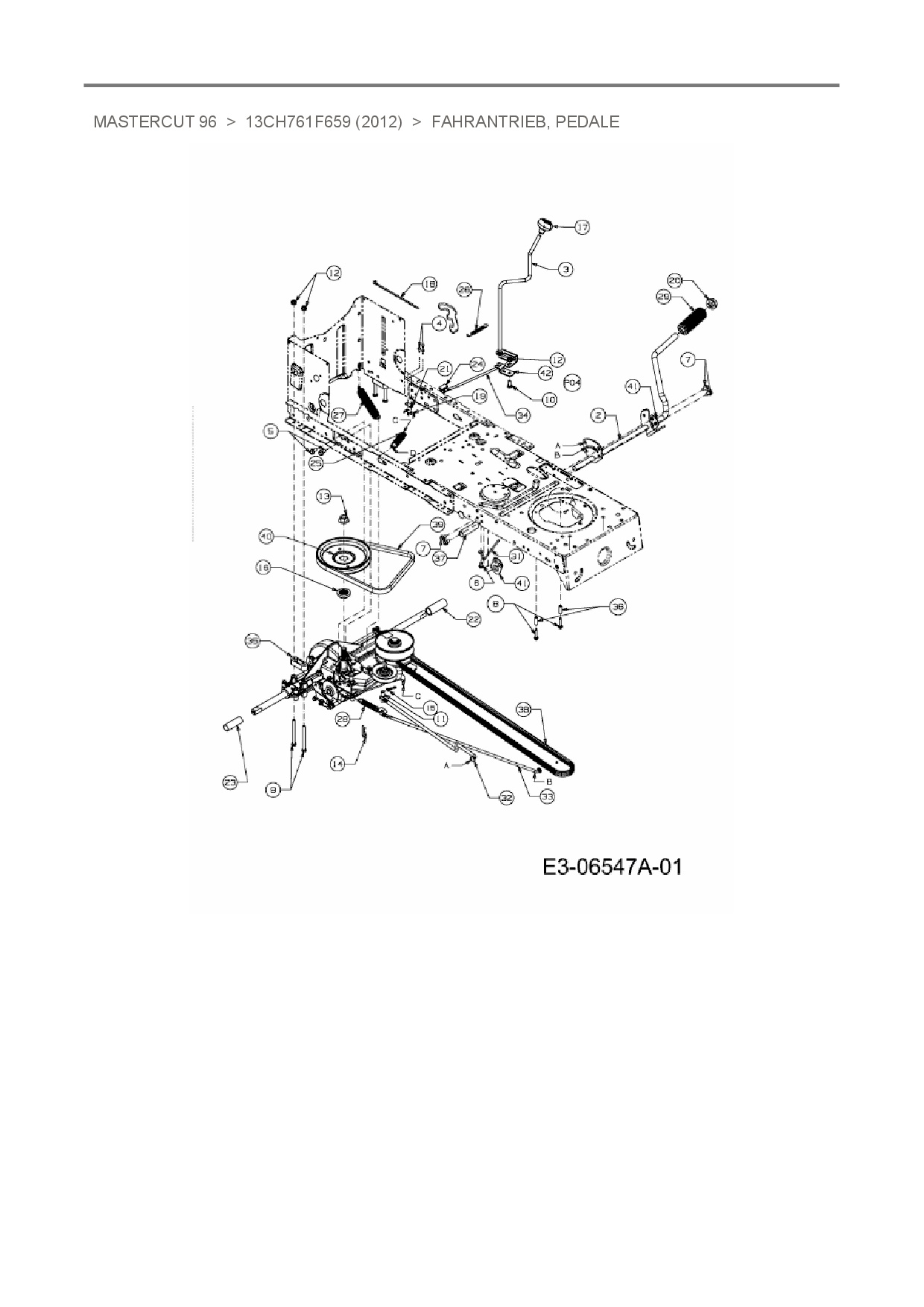 Ersatzteile für Rasentraktor Mastercut Mastercut 96 aus der Zeichnung Fahrantrieb, Pedale: