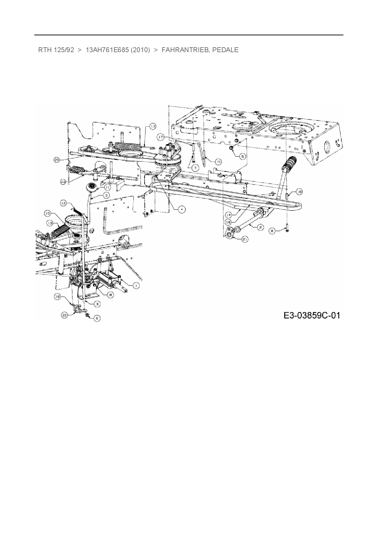 Ersatzteile für Rasentraktor Sunline RTH 125/92 aus der Zeichnung Fahrantrieb, Pedale: