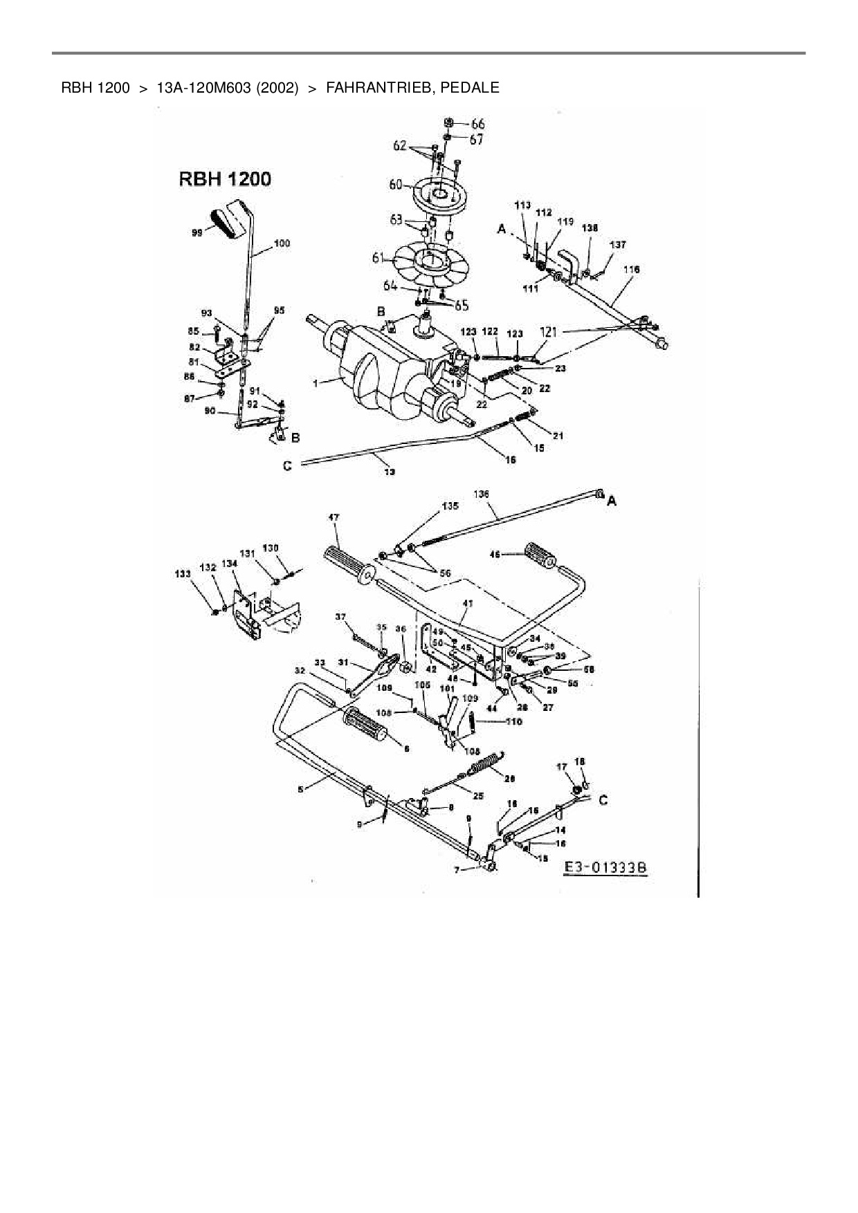 Download Ersatzteil-Zeichnung Cub Cadet RBH 1200 Zeichnung Fahrantrieb, Pedale (PDF-Format)