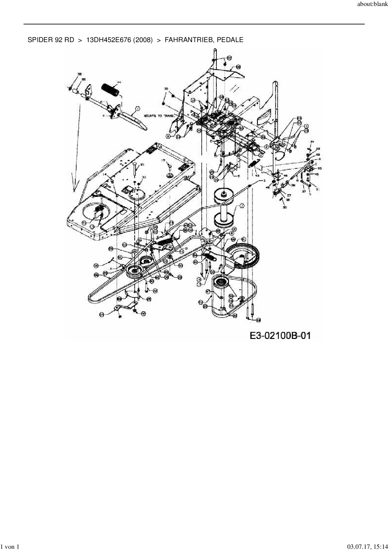 Download Ersatzteil-Zeichnung MTD Spider 92 RD Zeichnung Fahrantrieb, Pedale (PDF-Format)