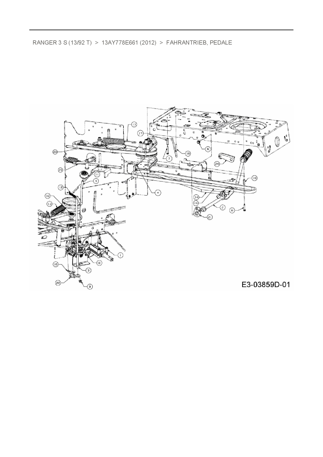 Ersatzteile für Rasentraktor Ranger Ranger 3 S (13/92 T) aus der Zeichnung Fahrantrieb, Pedale:
