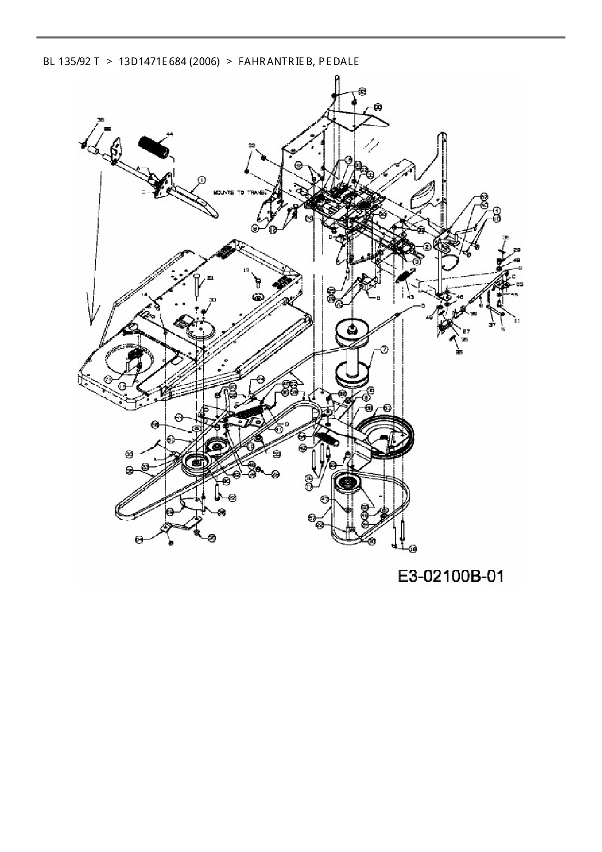 Ersatzteile für Rasentraktor Bolens BL 135/92 T aus der Zeichnung Fahrantrieb, Pedale: