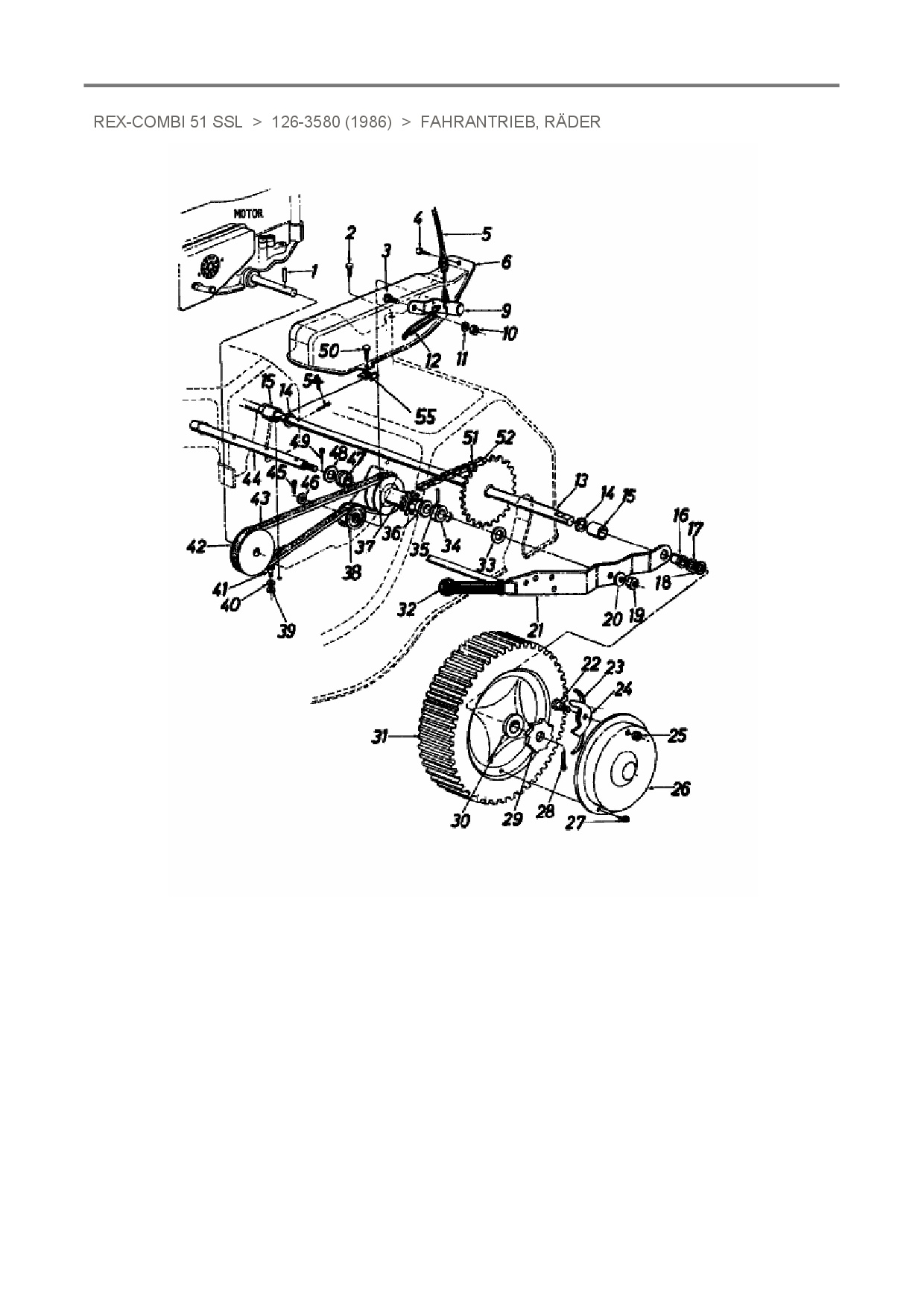 Ersatzteile für Motormäher mit Antrieb MTD Rex-Combi 51 SSL aus der Zeichnung Fahrantrieb, Räder: