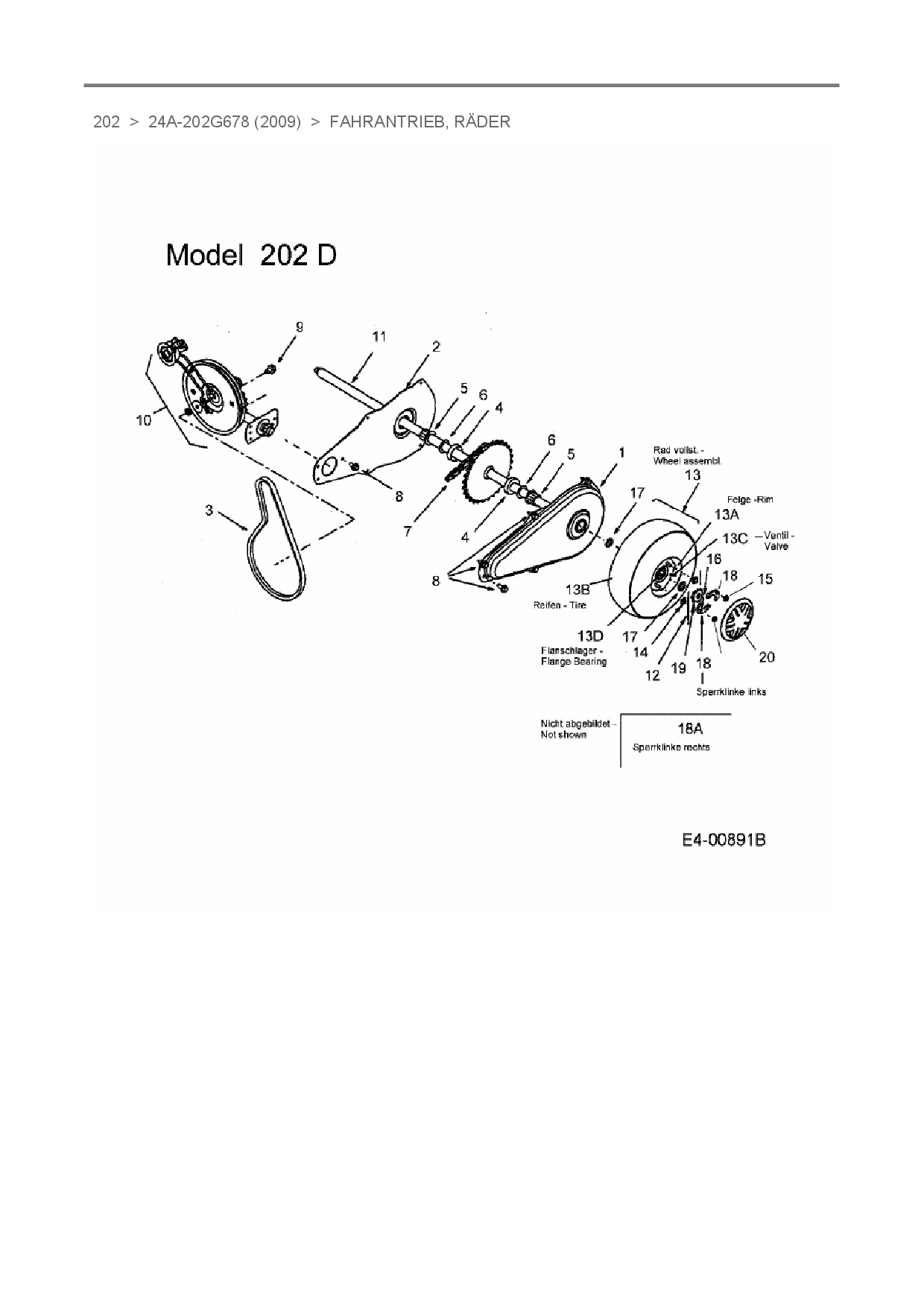 Ersatzteile für Laubsauger mit Häckselfunktion MTD 202 aus der Zeichnung Fahrantrieb, Räder: