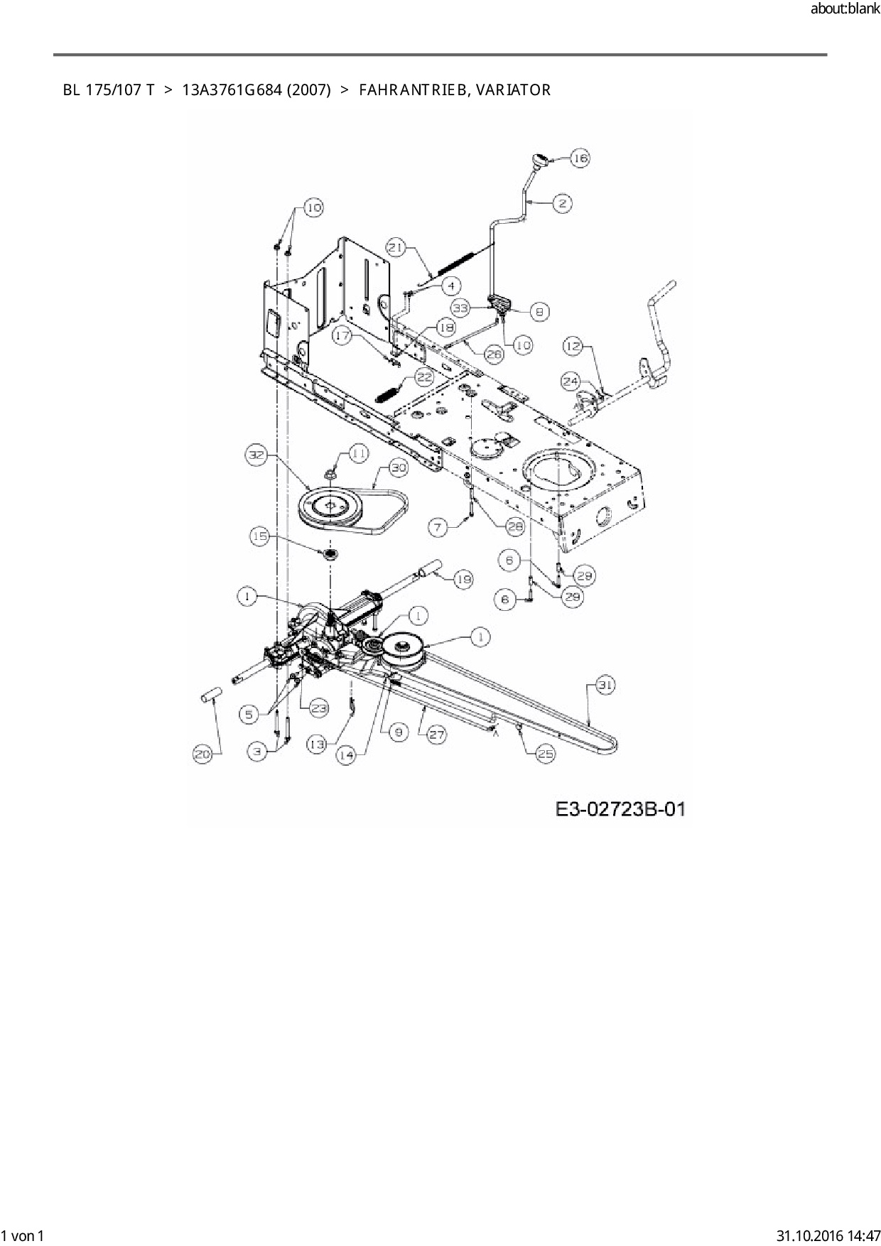 Ersatzteile für Rasentraktor Bolens BL 175/107 T aus der Zeichnung Fahrantrieb, Variator: