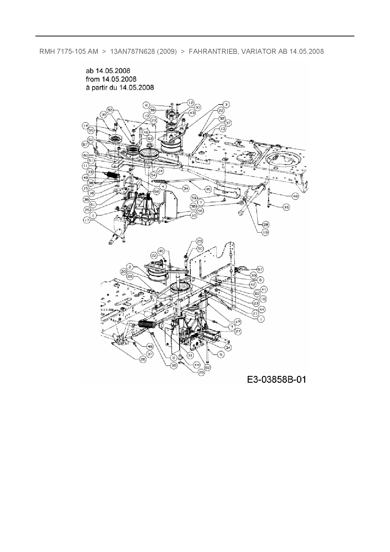 Ersatzteile für Rasentraktor Raiffeisen RMH 7175-105 AM aus der Zeichnung Fahrantrieb, Variator ab 14.05.2008: