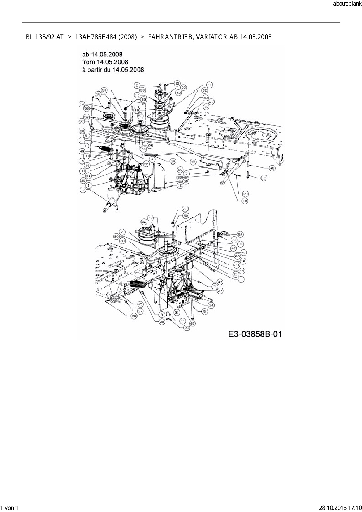 Ersatzteile für Rasentraktor Bolens BL 135/92 AT aus der Zeichnung Fahrantrieb, Variator ab 14.05.2008: