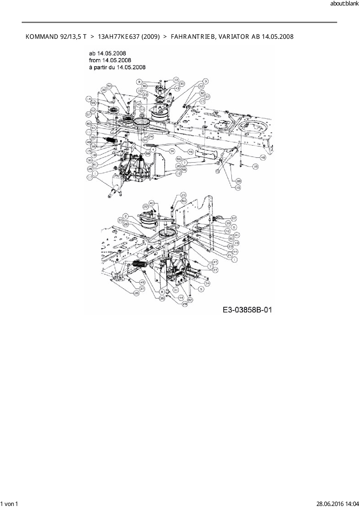 Ersatzteile für Rasentraktor EFCO Kommand 92/13,5 T aus der Zeichnung Fahrantrieb, Variator ab 14.05.2008: