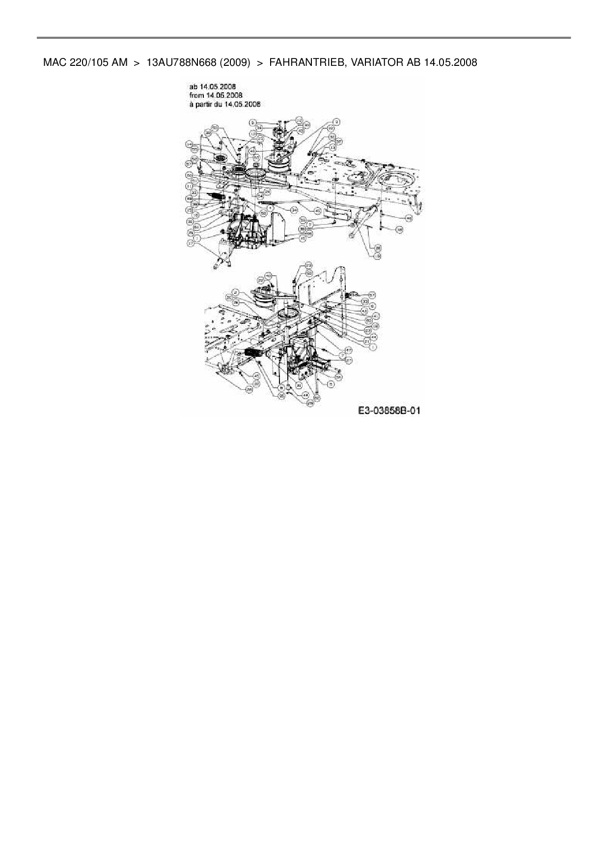 Ersatzteile für Rasentraktor Mac Allister Mac 220/105 AM aus der Zeichnung Fahrantrieb, Variator ab 14.05.2008: