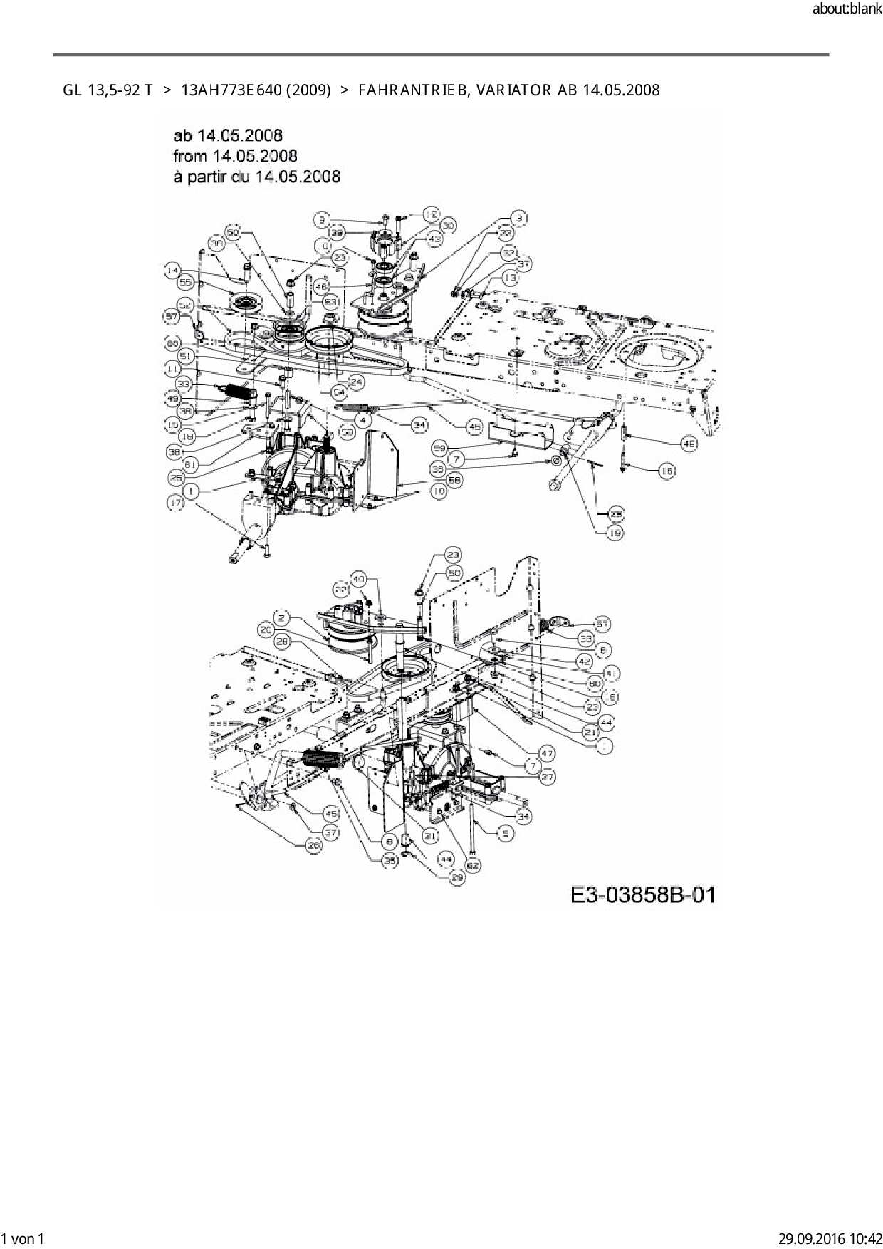 Ersatzteile für Rasentraktor Gartenland GL 13,5-92 T aus der Zeichnung Fahrantrieb, Variator ab 14.05.2008:
