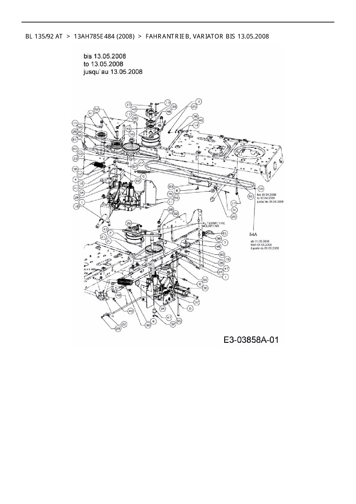 Ersatzteile für Rasentraktor Bolens BL 135/92 AT aus der Zeichnung Fahrantrieb, Variator bis 13.05.2008: