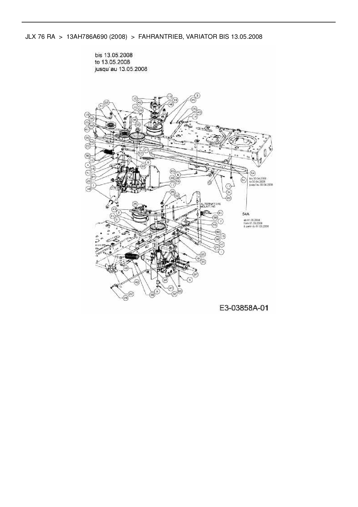 Download Ersatzteil-Zeichnung Gutbrod JLX 76 RA Zeichnung Fahrantrieb, Variator bis 13.05.2008 (PDF-Format)