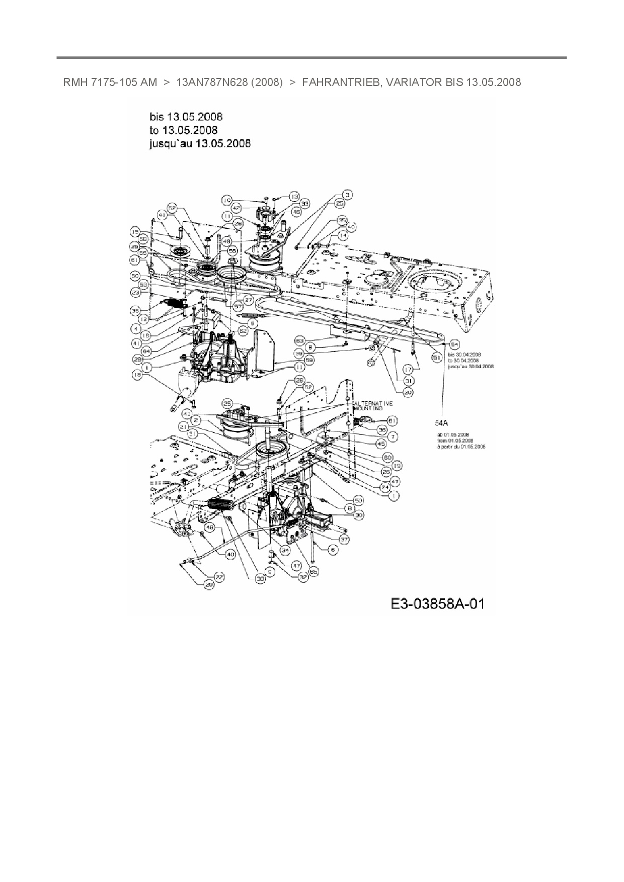 Ersatzteile für Rasentraktor Raiffeisen RMH 7175-105 AM aus der Zeichnung Fahrantrieb, Variator bis 13.05.2008: