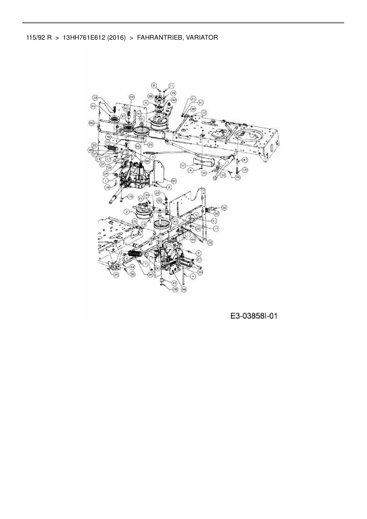 Ersatzteile für Rasentraktor MTD 115/92 R aus der Zeichnung Fahrantrieb, Variator: