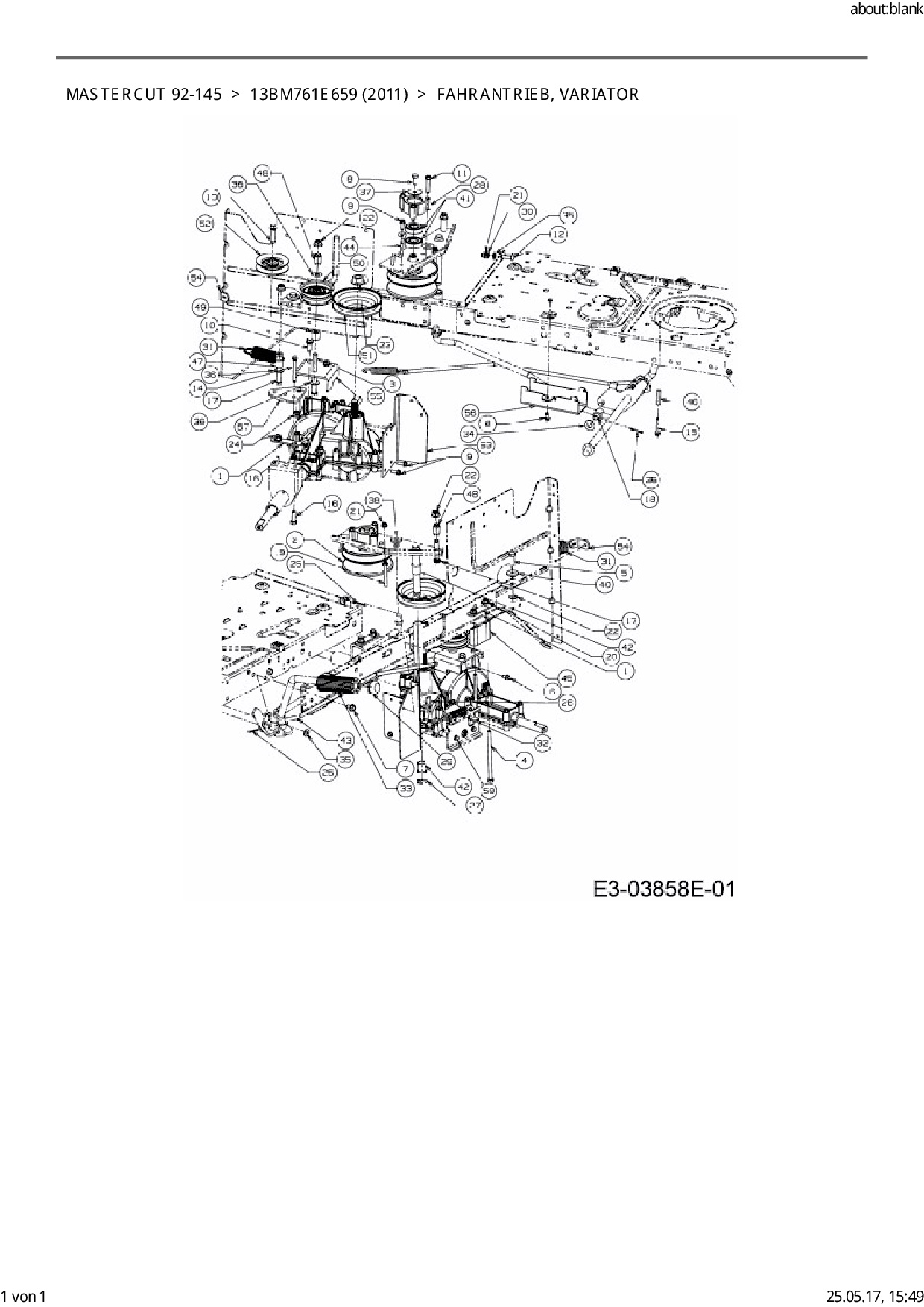 Download Ersatzteil-Zeichnung Mastercut Mastercut 92-145 Zeichnung Fahrantrieb, Variator (PDF-Format)