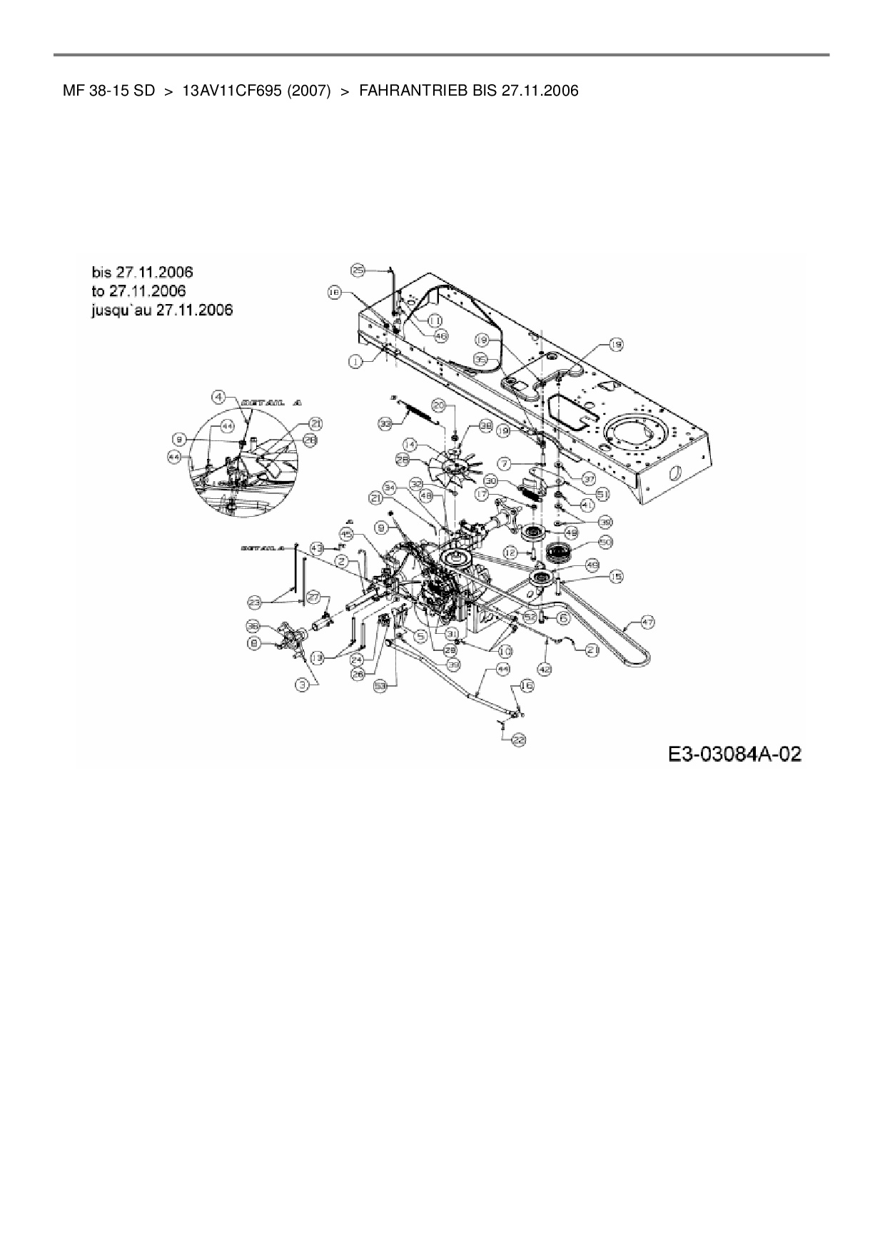Ersatzteile für Rasentraktor Massey Ferguson MF 38-15 SD aus der Zeichnung Fahrantrieb bis 27.11.2006: