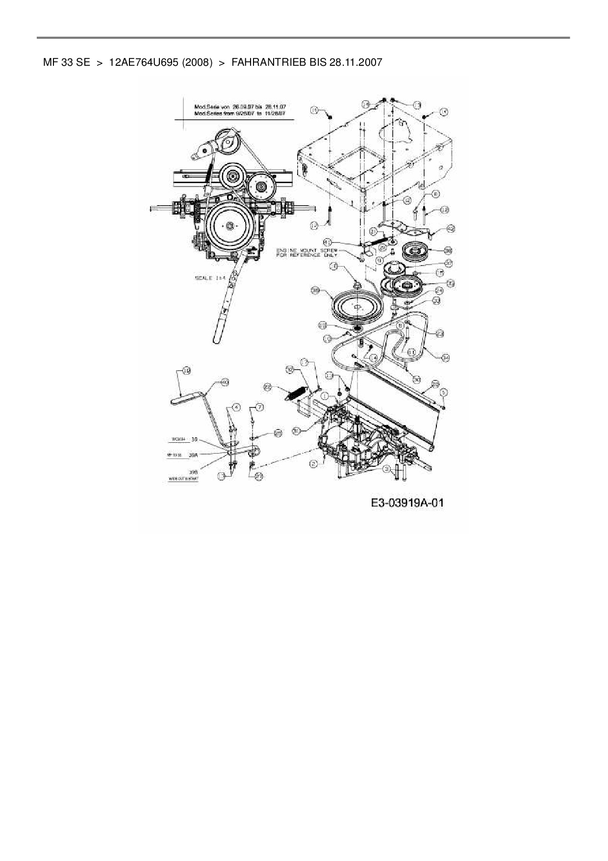 Ersatzteile für Motormäher mit Antrieb Massey Ferguson MF 33 SE aus der Zeichnung Fahrantrieb bis 28.11.2007:
