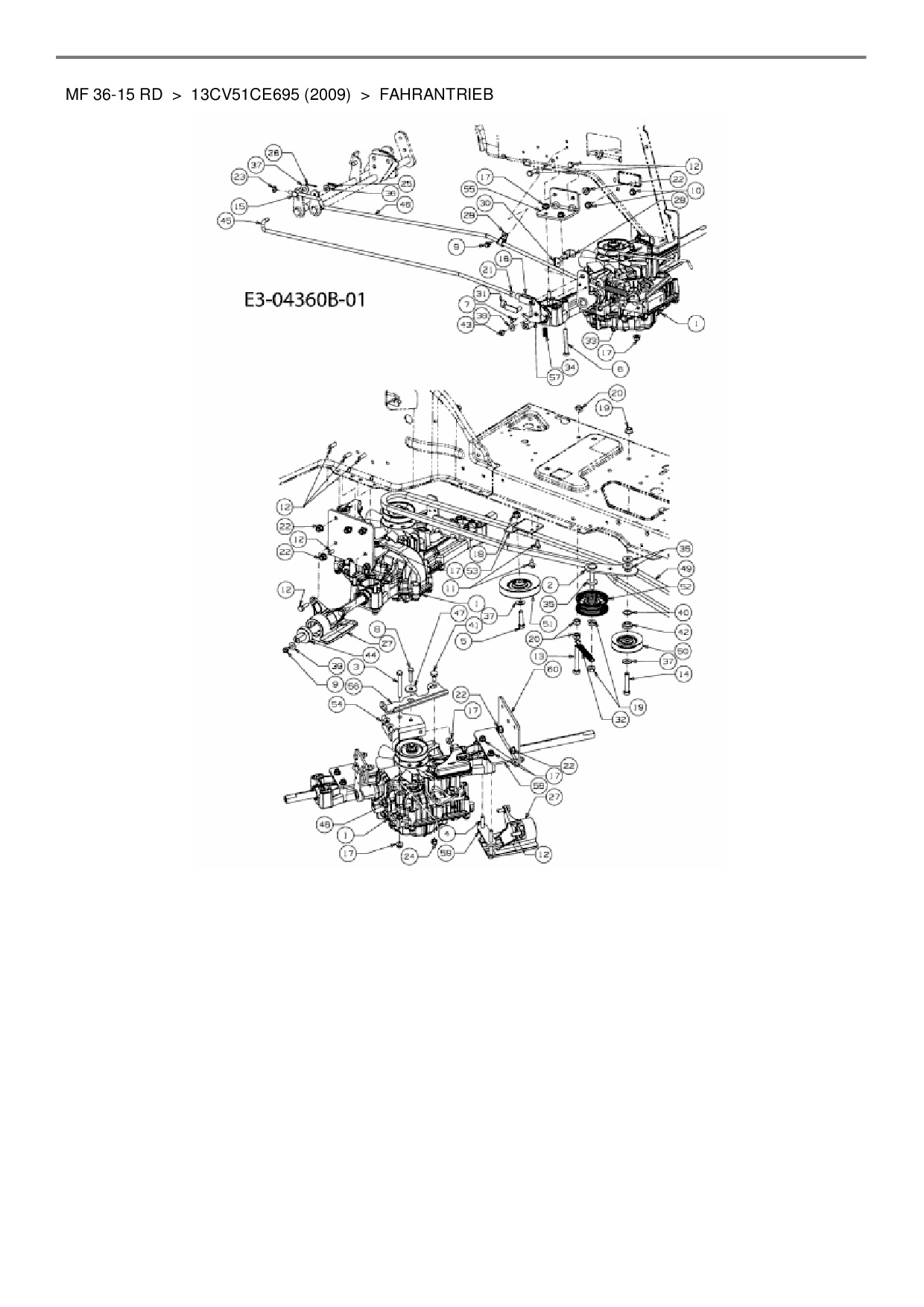 Zeichnung für Massey Ferguson Rasentraktor MF 36-15 RD mit der Geräte-Artikelnr. 13CV51CE695 ab Baujahr 2009: