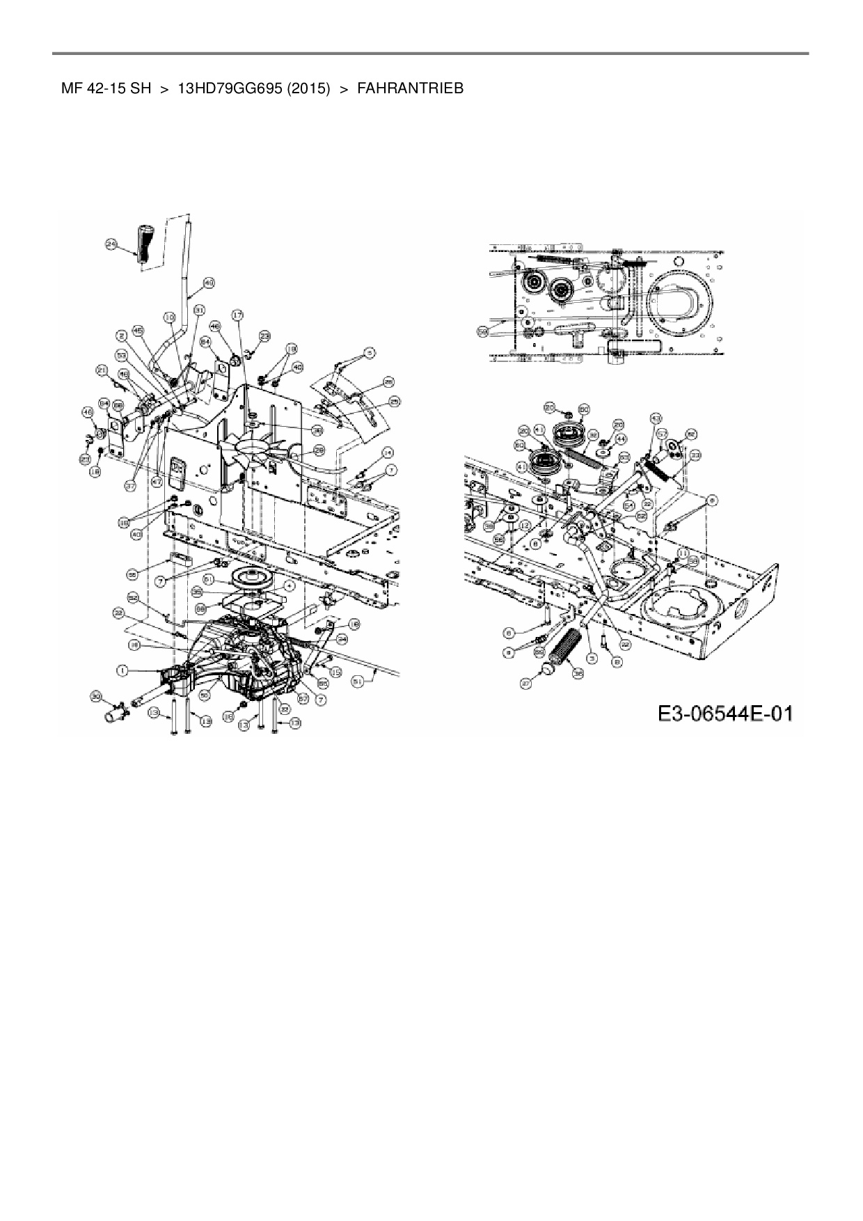 Zeichnung für Massey Ferguson Rasentraktor MF 42-15 SH mit der Geräte-Artikelnr. 13HD79GG695 ab Baujahr 2015: