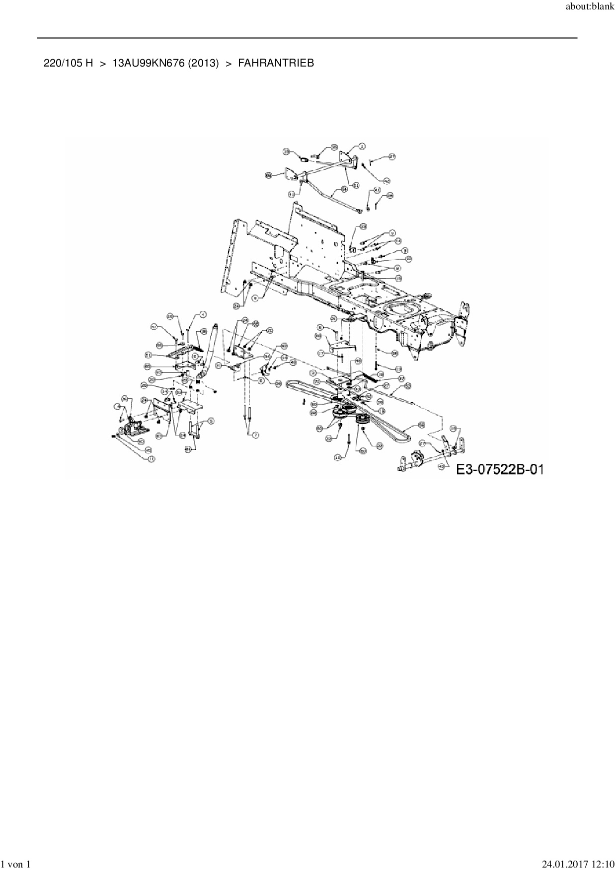 Zeichnung für MTD Rasentraktor 220/105 H mit der Geräte-Artikelnr. 13AU99KN676 ab Baujahr 2013: